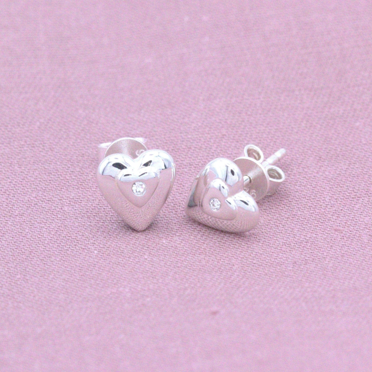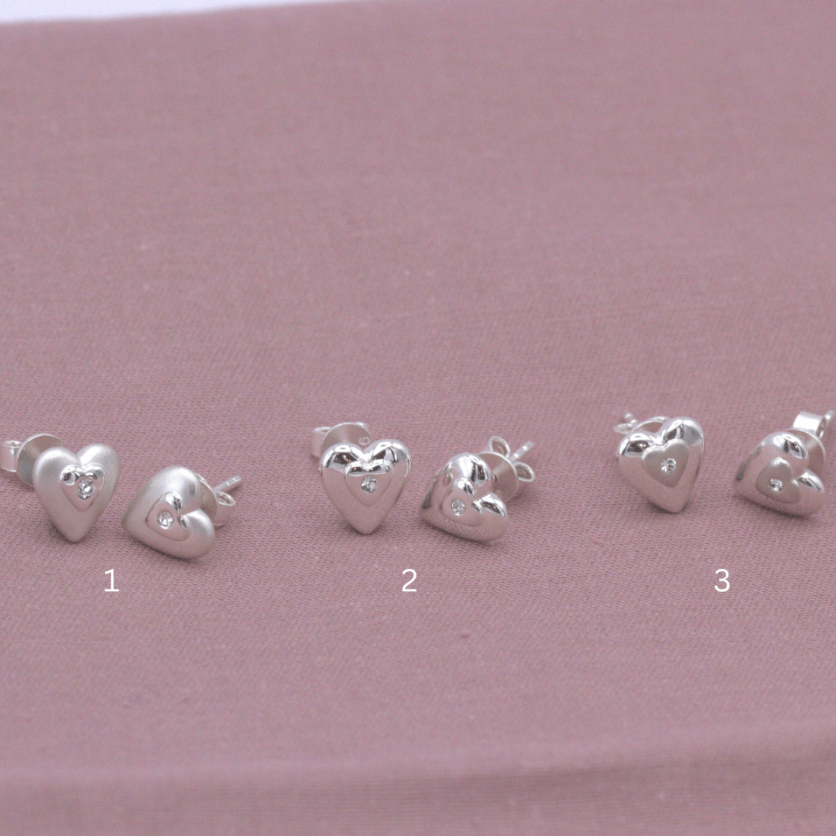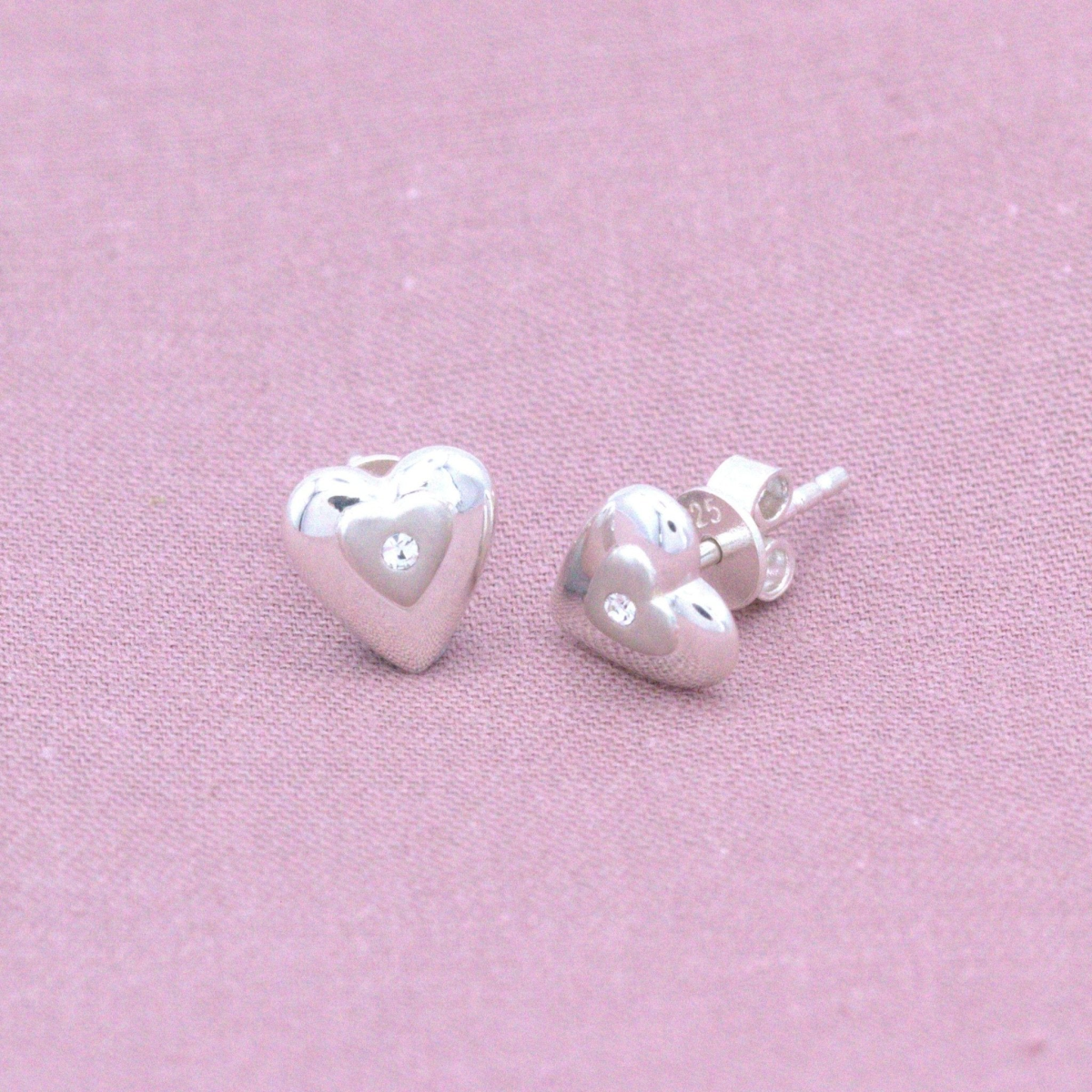 Sterling Silver Embedded Crystal Heart Stud Earrings