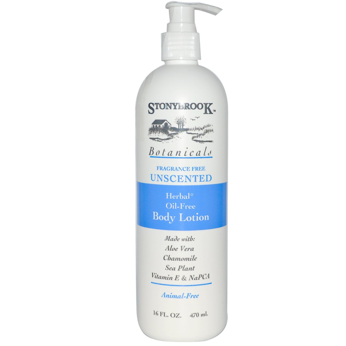 Fragrance Free Oil-Free Animal Free Cruelty-Free Made with: Aloe Vera Chamomile Sea Plant Vitamin E & NaPCA Cruelty-Free Stony Brook Unscented Body Lotion is a moisturizing alternative that works when most lotions won't. Its Vitamin A, C, & E formula combined with Organic Herbal Extracts provide soothing relief for dry hands and skin. Lighter than a cream because it does not contain petroleum or mineral oil. The Chamomile, combined with Aloe Vera and Sea Plant extract (Kelp), smoothes and softens the skin. NaPCA has been added to retain moisture and keep the skin healthy and beautiful. Gentle, non-oily and effective for all dry & cracked skin areas.