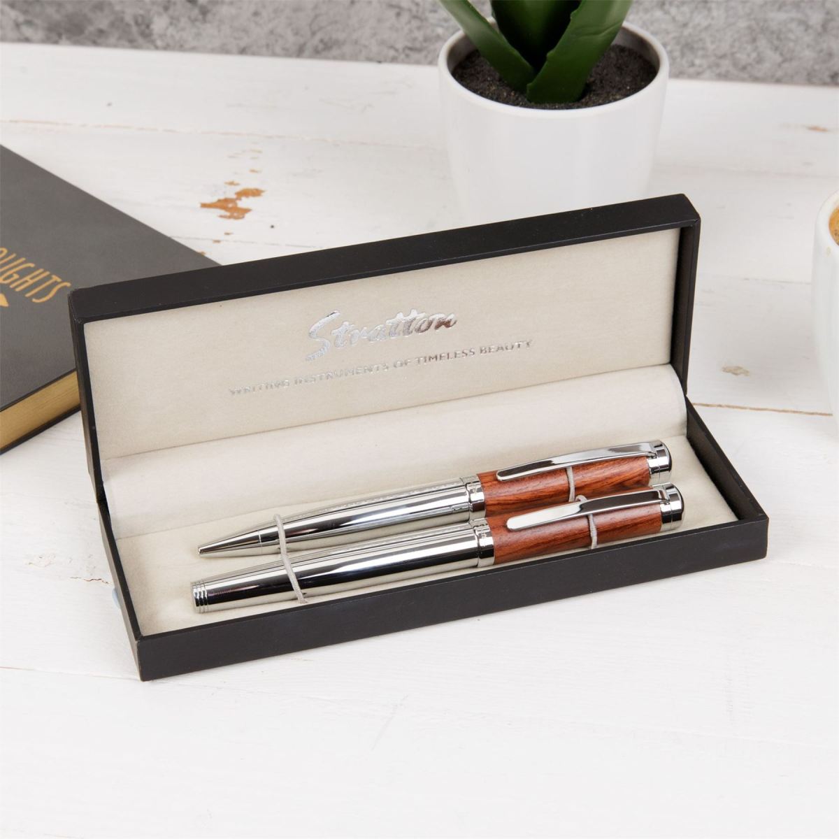 Stratton Rollerball & Ballpoint Pen Set - Wood & Chrome