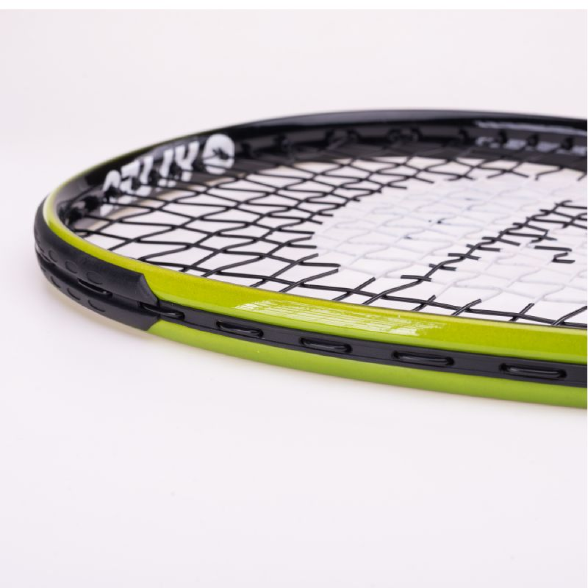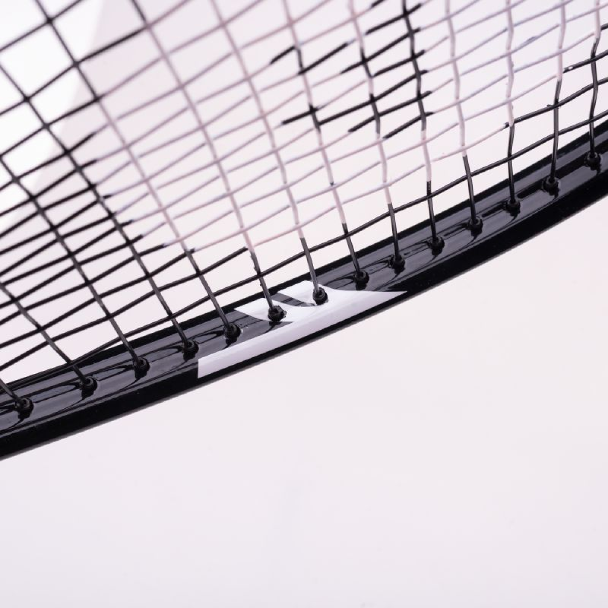 SQUASH RACKET TOTAL LENGTH: 27 inch/68.58 cm HEAD: 490 cm2 GRIP: 18.8 cm WEIGHT: 215+/-10 g MATERIAL COMPOSITION: FRAME: ALUMINUM SHAFT: ALUMINUM T-JOINT: NYLON STRINGS: NYLON GRIP: PU GRIP: PU FOAM SPECIFICATIONS: - RACKET NECK: CLOSED - BALANCE: 320 mm - FLEXIBILITY: MEDIUM - STRING TENSION: 35 lbs