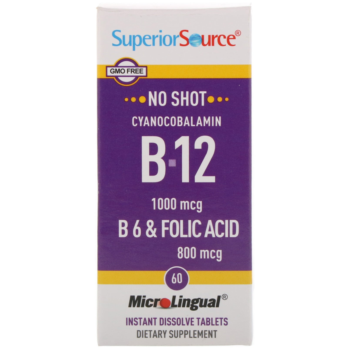 Superior Source, Cyanocobalamin B-12 1000 mcg, B-6 & Folic Acid 800 mcg, 60 MicroLingual Instant Dissolve Tablets