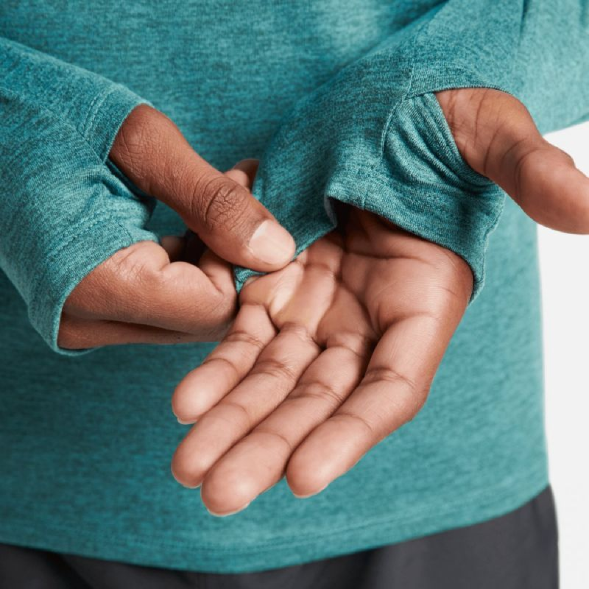 • The Nike Dri-FIT Top lets you adjust your coverage, while thumbholes add warmth.