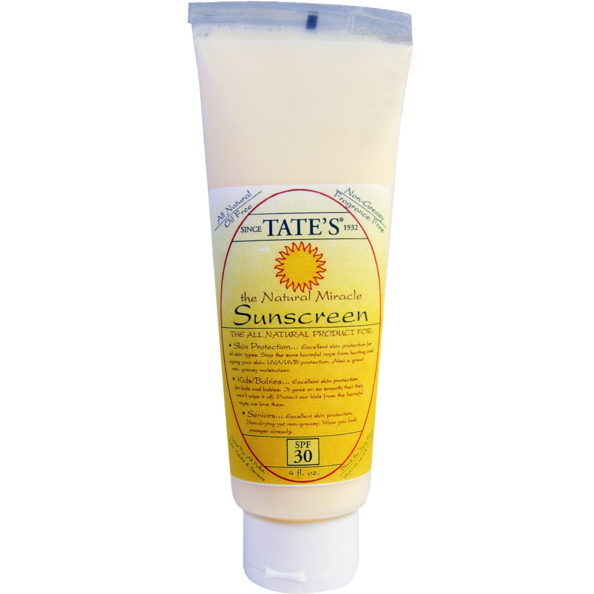 Tate's The Natural Miracle Sunscreen SPF 30 4 fl oz