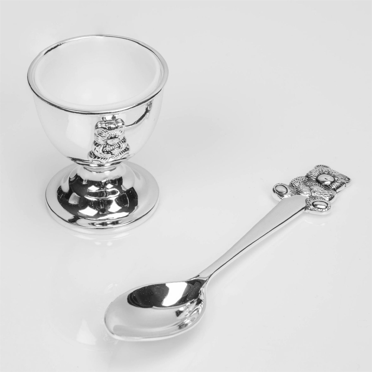 Whether it's for a baby shower, first birthday, christening or just to welcome a newborn into the family, this egg cup and spoon set will be treasured for many years. This beautiful silverplated set is adorned with cute teddy bear embellishments.