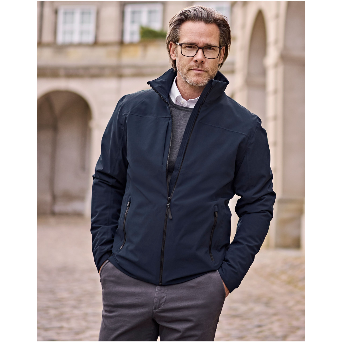 This modern jacket is crafted from high-quality, stretchable, waterproof material and insulated with premium DuPont™ padding. It features a stylish high collar and spacious front pockets with warm lining. If you're looking for a contemporary, sporty business jacket with a practical length, this one will complete your perfect outfit while offering both comfort and functionality.- High stylish collar