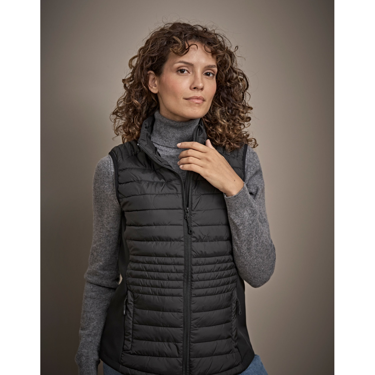 A trendsetting bodywarmer crafted from a combination of lightweight 300T polyester with padding and softshell, adding a sporty, urban vibe.- Water repellent & breathable