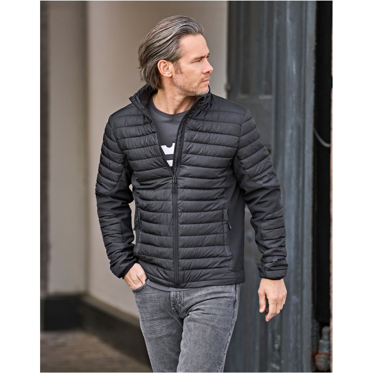 Tee Jays Men's Crossover Jacket | Showerproof Puffer | Softshell Panels | Black or Grey | S-4XL