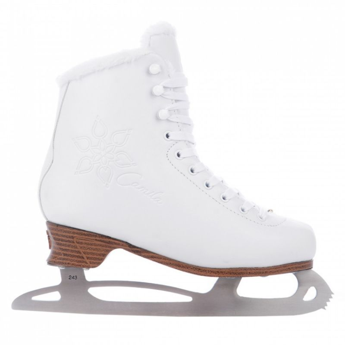 TEMPISH Camila Ice Figure Skates The CAMILA ICE women's ice skates are designed for discerning women. They are made of high-quality PU-based synthetic material. The skates feature a solid frame with an anatomically shaped ankle. The inner lining conforms to the shape of the foot and ensures comfort. The lining uses a new generation of SUPER SOFT FUN FUR material, which is pleasant to the touch and has excellent insulating properties, ensuring a pleasant feeling of comfort and warmth while skating. The skates are equipped with a new, original TEMPISH sole, which has a lower heel and a new, fresh look. The new TEMPISH WAVE blade is used – more elegant and lighter, yet harder. A high-quality, solid connection between the upper and the sole is made. TECHNICAL PARAMETERS Intended use Riding, recreational, fashion Blades TEMPISH WAVE, stainless steel, polished Outer material PU material in 3 layers, one layer has a relief print Inner material SuperSoft fur with thermal insulation properties Anatomical tongue Fastening system Laces Lining INTEGRAL thermo-anatomical lining with memory based on DB 320 latex.