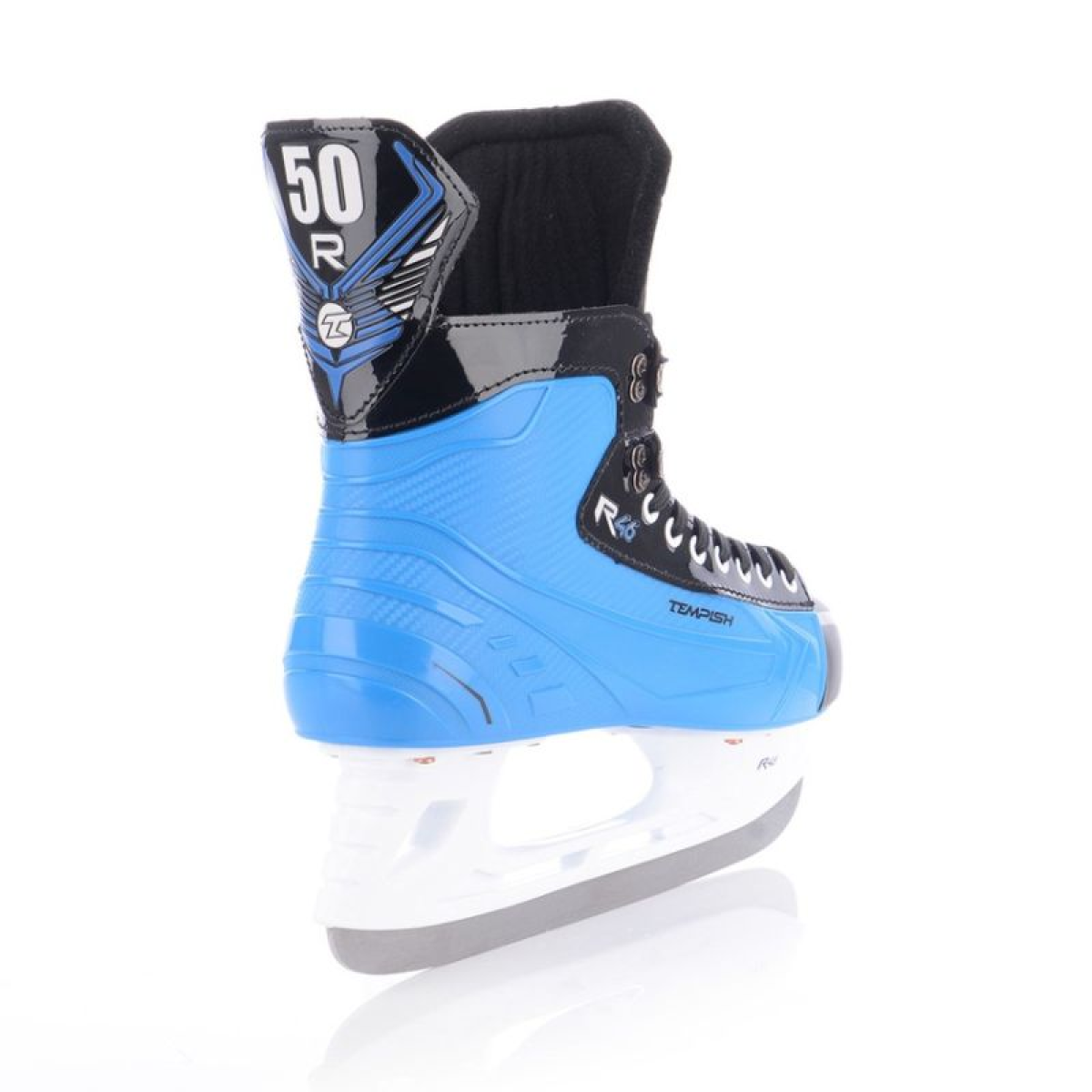 TEMPISH Rental R46T Max Sr Ice Skates: Professional quality designed for intensive use! The special TEMPISH RENTAL R46T Max Sr ice skates are designed for rental companies and advanced skaters who require maximum durability, comfort, and support. Their robust, one-piece composite construction ensures optimal fit and exceptional durability for everyday use. Key Features: Durable Construction: The body is made of a single piece of resistant composite plastic, guaranteeing lightness, stability, and longevity. Anatomical Shape: Perfect fit, especially around the Achilles tendon and ankles, ensures comfort and protection against injuries. Comfortable Lining: A foam liner and anatomical insole keep the foot stable in the skate, offering maximum comfort even during extended use. Anatomical Tongue: Consists of two parts, ensuring a snug fit around the instep, ankle, and calf; moderately reinforced for enhanced protection. Durable CAMBRA interior: Abrasion-resistant, insulated, quick-drying, and effectively wicks moisture – ideal for intensive, everyday use. High-quality blade: Stainless steel, attached to a sturdy handle with 10 steel and 4 copper rivets, guarantees precise skating and durability. Practical: Size marking on the heel facilitates handling and speeds up the work of rental staff. TEMPISH Rental R46T Max SR hockey skates combine durability, comfort, and functionality. Designed specifically for rental companies, they offer unparalleled quality, stability, and comfort – ideal for advanced users and intensive use on the rink. Technical specification Recommended use Regular daily use in rental shops, for advanced skaters Outer material Very durable, hard thermoplastic composite Inner material CAMBRA, anatomical insert Tongue construction Anatomical two-piece tongue, 3D construction, material - special, resistant PVC + felt 9mm Lining Anatomic with foam padding in the ankle area Blade TEMPISH 7000, coated steel Fastening system Laces Weight limit [kg] 100