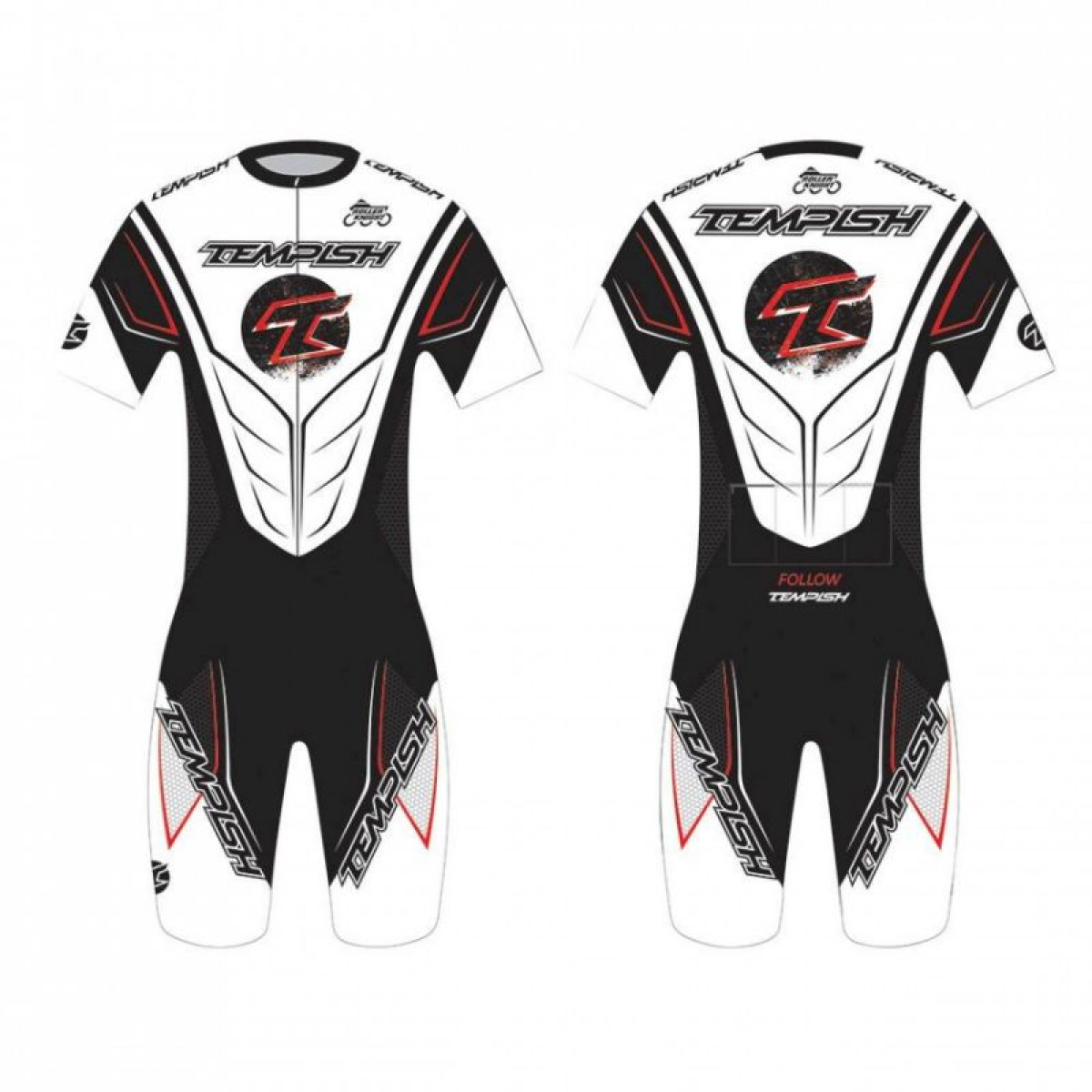 Tempish Roller Knight Skating Suit. Roller skating suit with an allover print. Concealed front zipper, 2 back pockets, one with a zipper. Sizes: XS, S, M, L, XL, XXL.
