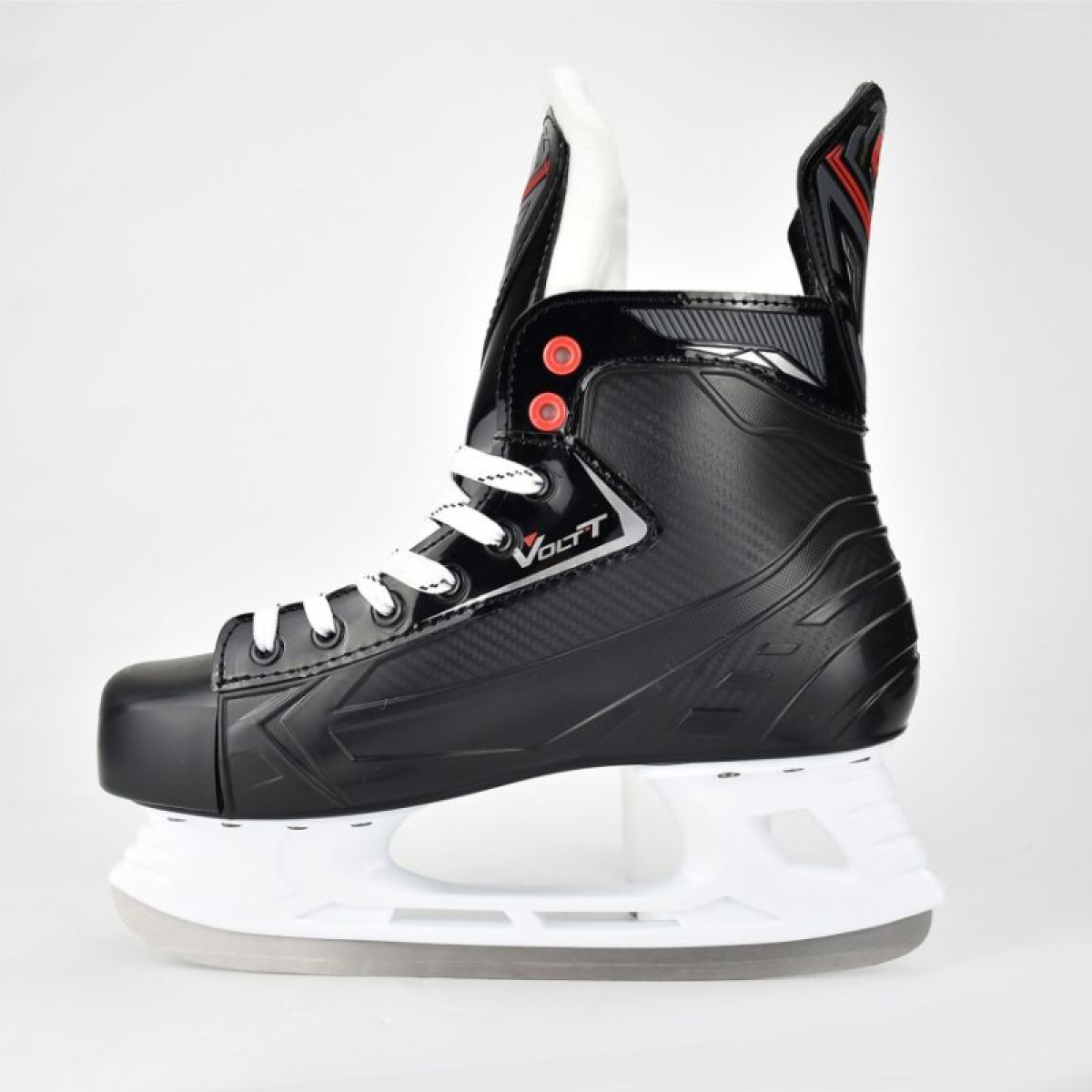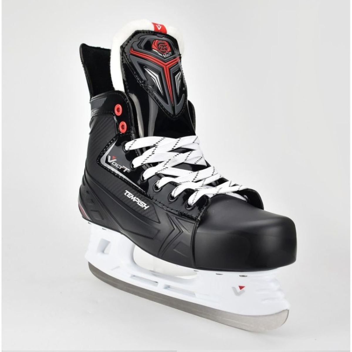 TEMPISH VOLT-T Junior Hockey Skates. Comfort and Durability for Amateur Players. TEMPISH VOLT-T hockey skates are the perfect choice for amateurs looking for comfortable and reliable skates for recreational play and training. With a durable construction, anatomical fit, and robust materials, the VOLT-T provides adequate support and comfort even during extended sessions on the ice. Key Features: Durable and Stable Construction: Upper made of a durable thermoplastic composite One-piece shell for increased foot stability Anatomical PVC tongue with a 9mm felt layer protects against pressure points User Comfort: Interior lined with soft CAMBRA nylon Anatomically contoured footbed for a comfortable fit Foam padding around the ankle for added protection and comfort Confidence and Control on the Ice: TEMPISH 7000 stainless steel blade – durable and wear-resistant Classic lacing system – easy to adjust to the foot Good foothold for stability while skating The TEMPISH VOLT-T Jr are durable and comfortable ice skates designed for recreational and amateur players. Their durable construction, anatomical profile, and reliable blade make them perfect for both training and recreational play on the rink. TECHNICAL DATA Intended use Ice hockey, Junior Outer material Hard composite thermoplastic material Anatomical shape Ankle and Achilles tendon area, one-piece frame Inner material CAMBRA brushed nylon, anatomical insole Tongue construction Anatomic, PVC + felt 9 mm Blade TEMPISH 7000 stainless steel Fastening system Waxed laces Lining Anatomic with foam in the ankle area