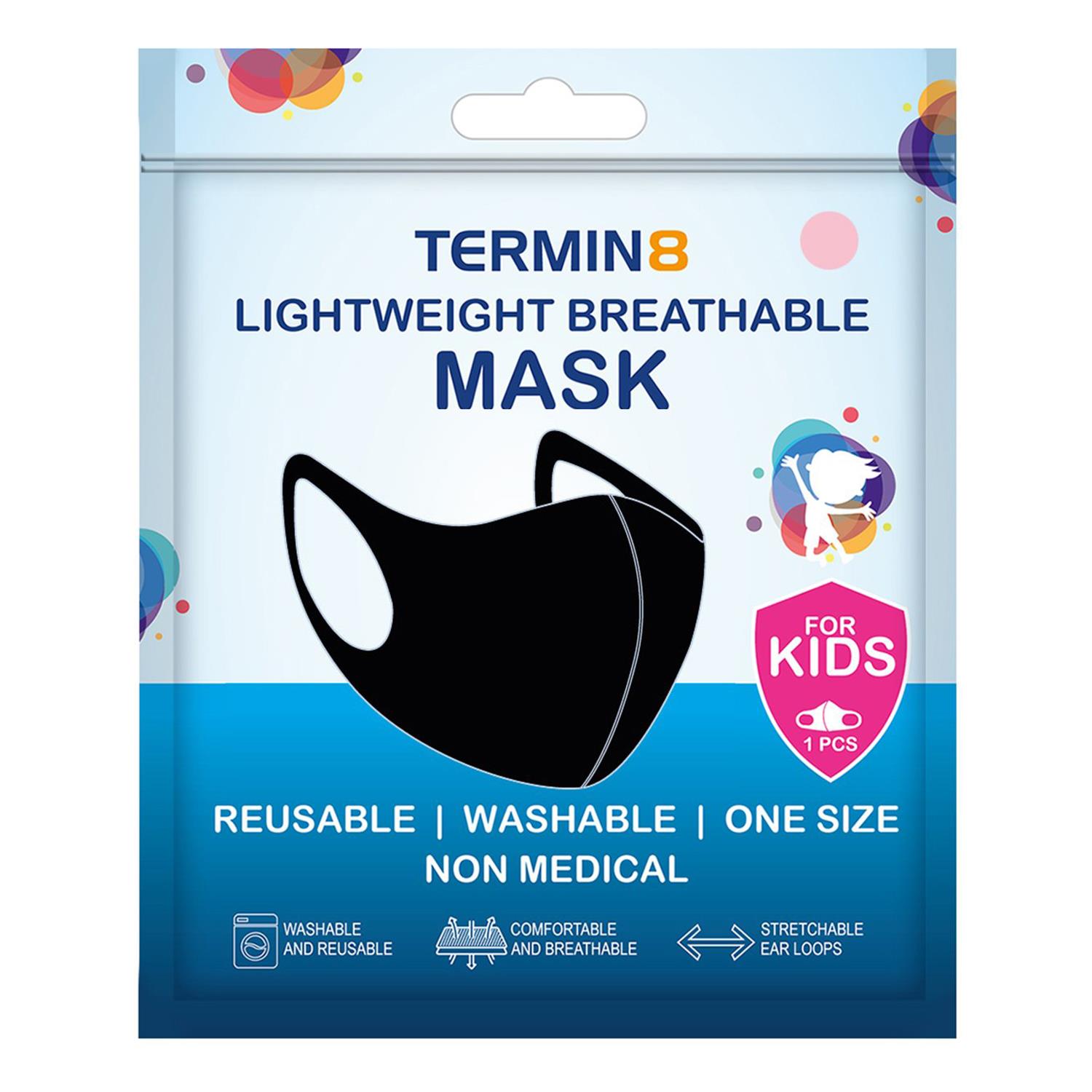 Termin8 Lightweight Breathable Reusable Face Mask for Kids - Black