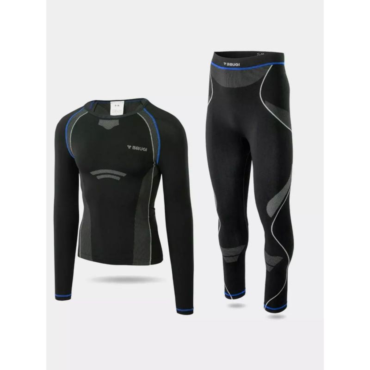 BRUGI men's thermoactive underwear set. Set of longsleeve shirt and long leggings. The clothing is made of high-quality elastic thermoactive materials that perfectly fit the body and wick away moisture to the outside. The quick-drying material is perfect for physical activity and everyday use. This type of clothing can be the first thermal layer (so-called base layer) for active users. A set of underwear perfect for running, biking, hiking, skiing or snowboarding. Underwear is perfect for both summer and winter.