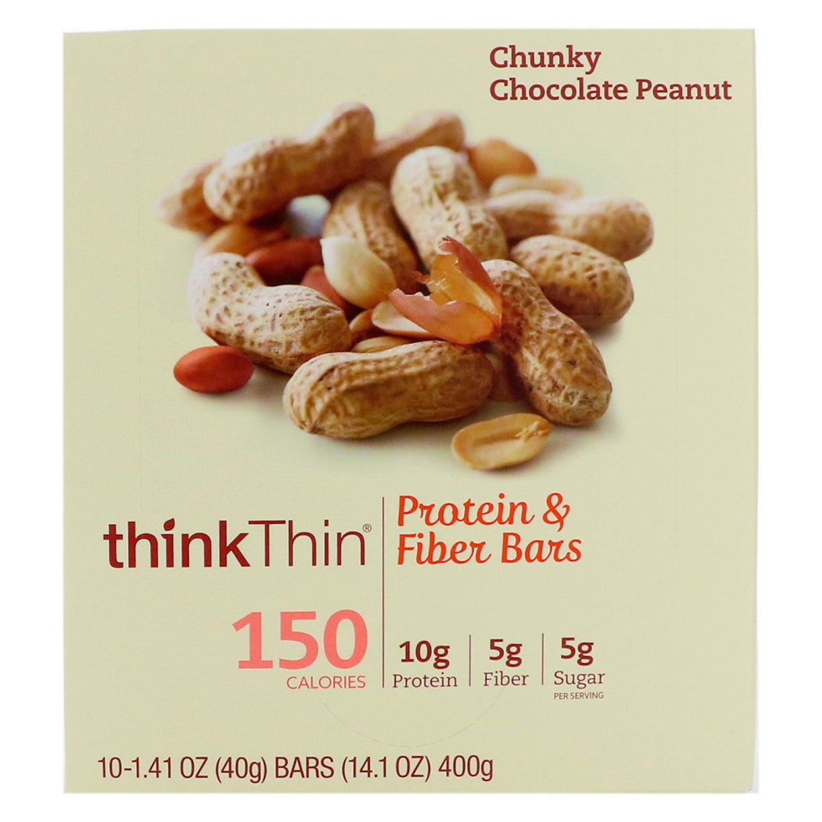 ThinkThin Protein & Fiber Bars Chunky Chocolate Peanut 10 Bars 1.41 oz (40 g) Each