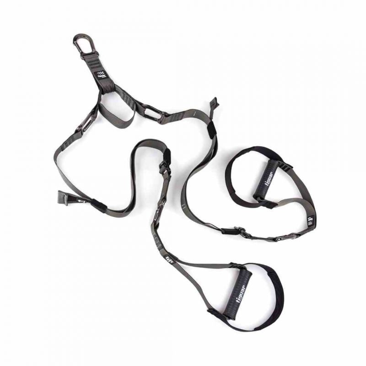 Tiguar alfa PRO is an innovative, modular suspended system - it consists of several components that increase the scope of its application and enable it to be used not only in strengthening and stretching training, but also in gymnastics and aerial training. Extraordinary versatility, guarantee of maximum safety, the use of the highest quality materials, Polish production and attention to detail - these are the features that make tiguar alfa PRO a unique product in its category. The first modular suspension system on the market tiguar alfa PRO training bands are the first suspension training bands on the market that enable such a wide range of exercises. All this is possible thanks to an open system that allows you to combine modules in different ways, thus obtaining many types of equipment. From now on, the standard use of tapes in training with your own body weight is just one of the options available to people who choose tiguar alfa PRO tapes. It only takes a few seconds to disconnect the individual parts of the system and replace traditional exercise handles with gymnastic rings, aerial accessories, a trapeze or a swing. Training tapes for clubs and home users In addition to providing the global market with a suspension system that will maximize its use in various types of training, giving a wide range of possibilities to both gyms and sports clubs as well as home users, our most important goal was to create the highest quality, professional training tapes at an optimal price. That is why tiguar training tapes are equipment designed by a team of experts and manufactured in Poland, which stands out from other similar equipment with above-average quality that allows for commercial use. The highest quality components and cooperation with the manufacturer of mountaineering equipment Since the reliability of tiguar equipment is a key feature for us, the components of the tiguar alfa sets are made of the highest possible quality materials. The carabiners are made of aviation aluminum (it is the most durable aluminum on the market, the carabiners made of it are both light and reliable), and the tapes themselves, with a weave specially designed by us, are woven in Poland. Throughout the design process, we cooperated with a company dealing in the production of mountaineering equipment, which guarantees that tiguar tapes maintain the highest quality safety standards in suspension training. CONVENIENCE OF USE TIGUAR ALFA PRO We have made sure that the tiguar suspended system is as easy to use as possible. Sale in a ready-made set: tiguar alfa PRO suspension system is sold in a ready-made set in a nice, ecological box containing: loop right arm left arm handle x 2 door handle extension with carabiner (1015 mm) extension 1234 mm x 2 storage bag Easy training and assembly: tiguar alfa PRO weighs only 1.2 kg, and its assembly is easy and takes little time. The set is convenient to transport, you can store it in a bag. It enables training at the gym, outdoors, at home, on the go... wherever it is possible to hang the set stably. Easily adjustable: Loop design with a carabiner allows you to adjust the different levels of the handles during training. We have also provided the possibility of easy adjustment of the arms in the range of up to 1.12 m. Application training with your own body weight functional training stretching and strengthening exercises aerial yoga (possibility of suspending the tiguar aerial hammock) aerial gymnastics (possibility of suspending the tiguar aerial hoop and tiguar aerial silk sashes) Strengths universality - an open, modular suspended system reliability - the components of the tiguar alfa PRO set are made of durable, high-quality materials, such as reinforced threads, PVC or aviation aluminum sold in a ready-made set Polish production convenience of transport easy assembly intuitive adjustment high value for money prices an exceptionally wide range of exercises to be performed (even for suspended systems) the structure is designed in a way that allows the replacement of a given element of the set in the event of damage two types of extensions - one with a carabiner and a pair in the form of a loop esi - they allow tiguar alfa PRO to be mounted to any surface in the form of a beam, pipe or holder. A set of extensions will extend the set by more than 2 m. Important information tiguar alfa PRO: adjustable between 140-190 cm weight: 1.2 kg load capacity: 200 kg (maximum weight of a person who can safely use tiguar alfa PRO; the applied safety factor is 6 :1) color: graphite/black country of manufacture: Poland durable tested polyamide belt system with a thickness of 1.5 mm and a width of 36 mm and a strength of 17 kN (T/Pa/36/1.5) Carabiner: material: aviation aluminum withstands a load of 1.1 kN (about 1200 kg) the safety factor is 6:1 The product meets the requirements of: PN-EN-ISO 20957-1, PN-EN-ISO 20957-2, PN-EN-ISO20957-4 Warranty period: 12 months During use Store with away from UV rays, organic and inorganic solvents.