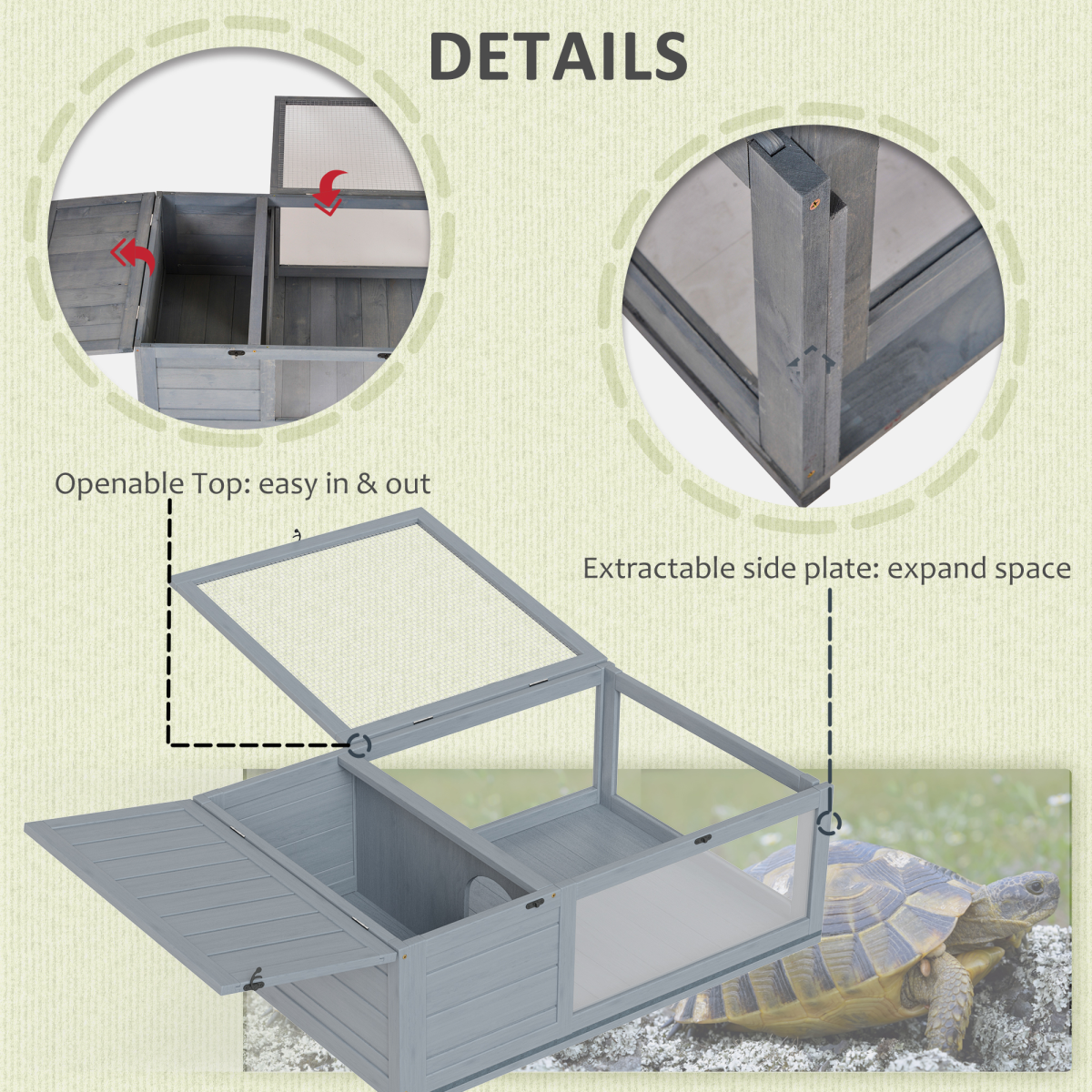 Tortoise House with Mesh Roof, Small Pet Reptile Wooden House, Grey