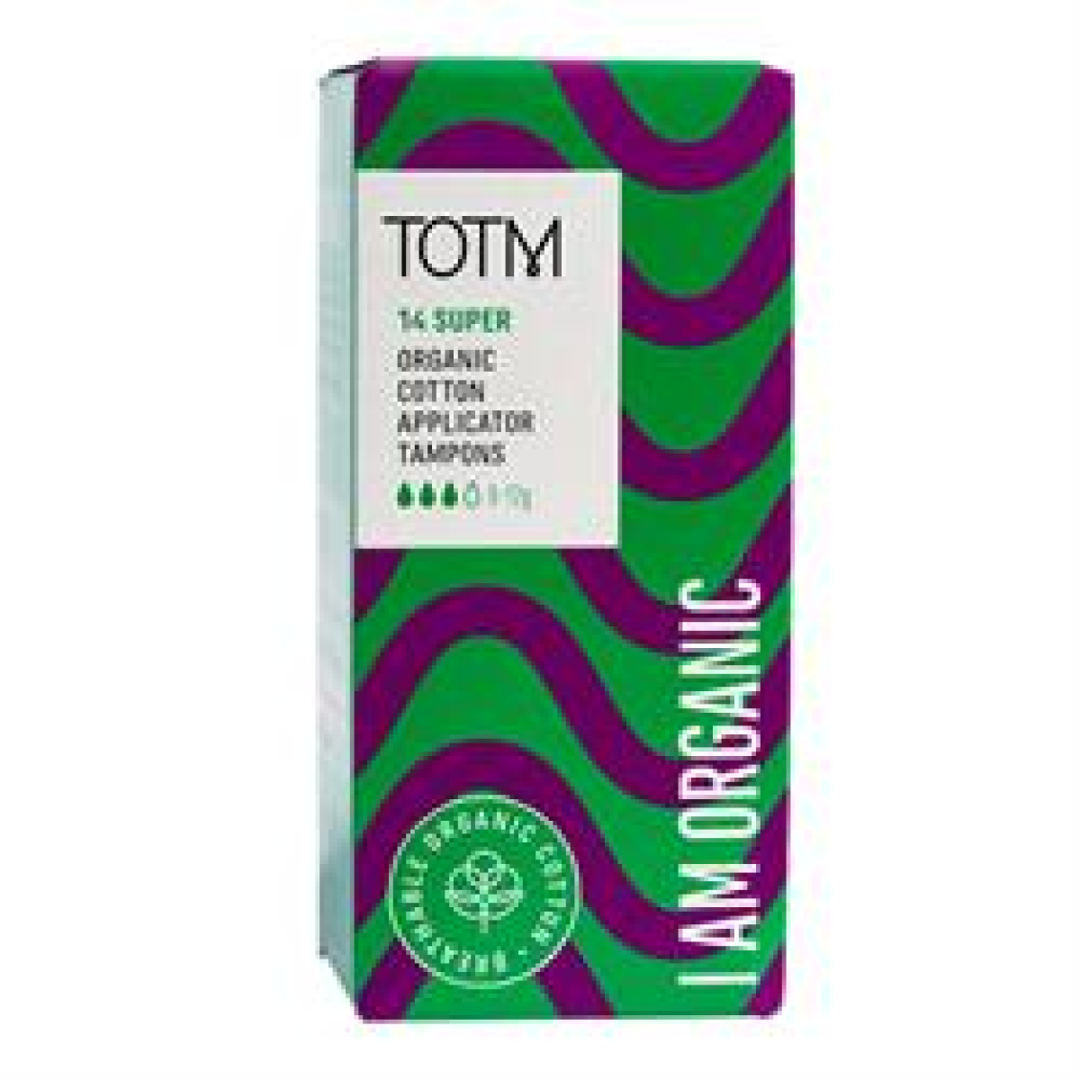 TOTM super absorbency applicator tampons are suitable for medium to heavy menstrual flow (9-12g). Each box contains 14 tampons, sold in cases of 10 boxes. To further reduce plastic waste, these tampons have paper wrappers and recycled cardboard boxes.