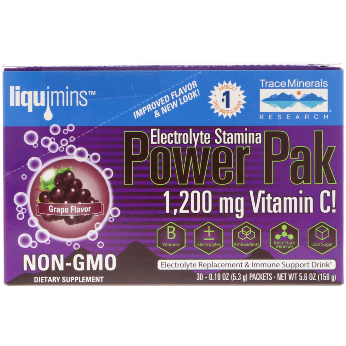 Trace Minerals Research, Electrolyte Stamina Power Pak, Grape, 1,200 mg, 30 Packets. 0.19 oz (5.3 g) Each