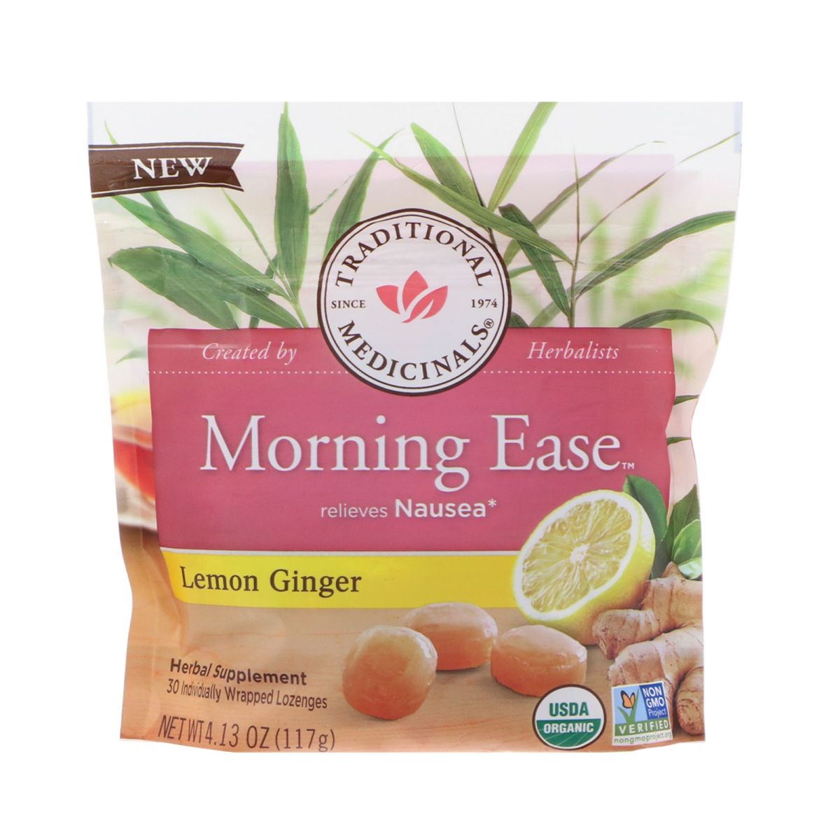 Traditional Medicinals, , Morning Ease, Lemon Ginger, 30 Individually Wrapped Lozenges, 4.13 oz (117 g)