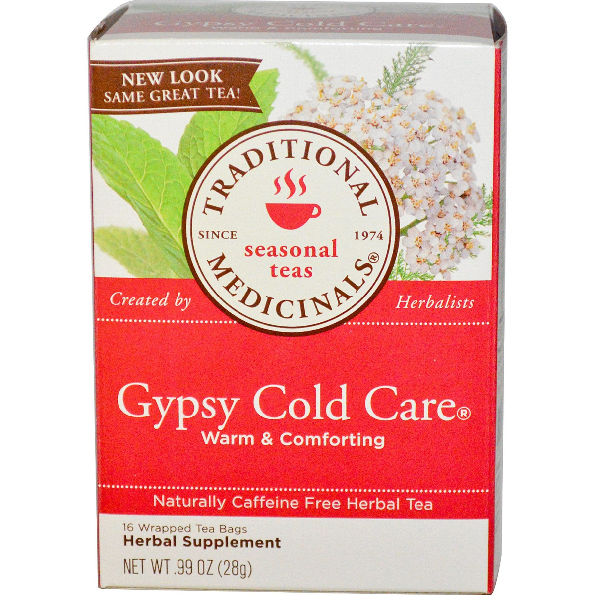 New Look, Same Great Tea! Since 1974 Created by Herbalist Warm & Comforting Herbal Supplement Naturally Caffeine Free Herbal Tea Certified by the California Certified Organic Farmers (CCOF) Non-GMO Project Verified Kosher Gypsy Cold Care The elder flowers used in this tea are sustainably gathered by hand by collectors throughout the wild regions of Europe. The wild lands of these areas are pristine and tremendously beautiful, but the old way of life is endangered by young people migrating to cities. We work closely with our wild collector groups to help keep wild-collection a viable way of life as well as to develop sustainability programs that manage these important plant resources so they will be available for generations to come. We've Got the Right Stuff We raise the bar. The quality standard of the herbs we use is hard to pronounce, difficult to meet, and it's what makes us different, better. Pharmacopoeial: it's the only quality standard our herbalists can rely on when blending teas for your health and wellness. Personality Nurturing and warm. Herbal Power Warms your spirit, brings comfort on cold winter nights. Reason to love Elder, yarrow and peppermint—the foundation of this tea—are a classic European blend of herbs used for centuries. We love the aroma of the pungent, minty steam that rises off this tea. Sip slowly and let your weary body be comforted by its warming properties. Fragrant and soothing, it’s one of those teas that just seems to say, “don’t worry, everything’s going to be all right.â€