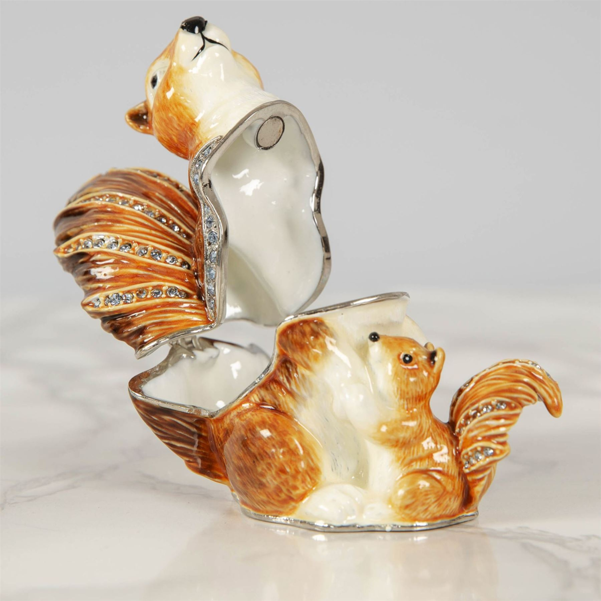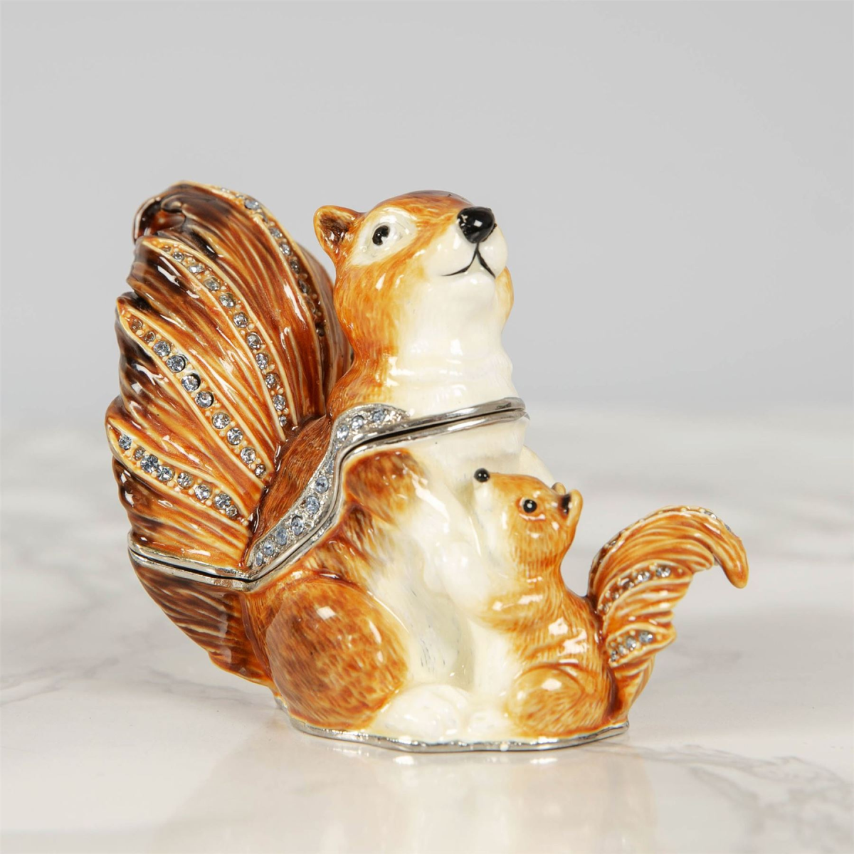 A beautiful die-cast metal mother & baby squirrel trinket box with crystal embellishments. From Treasured Trinkets by STRATTON� - hand painted, collectable trinkets to be treasured for a lifetime.