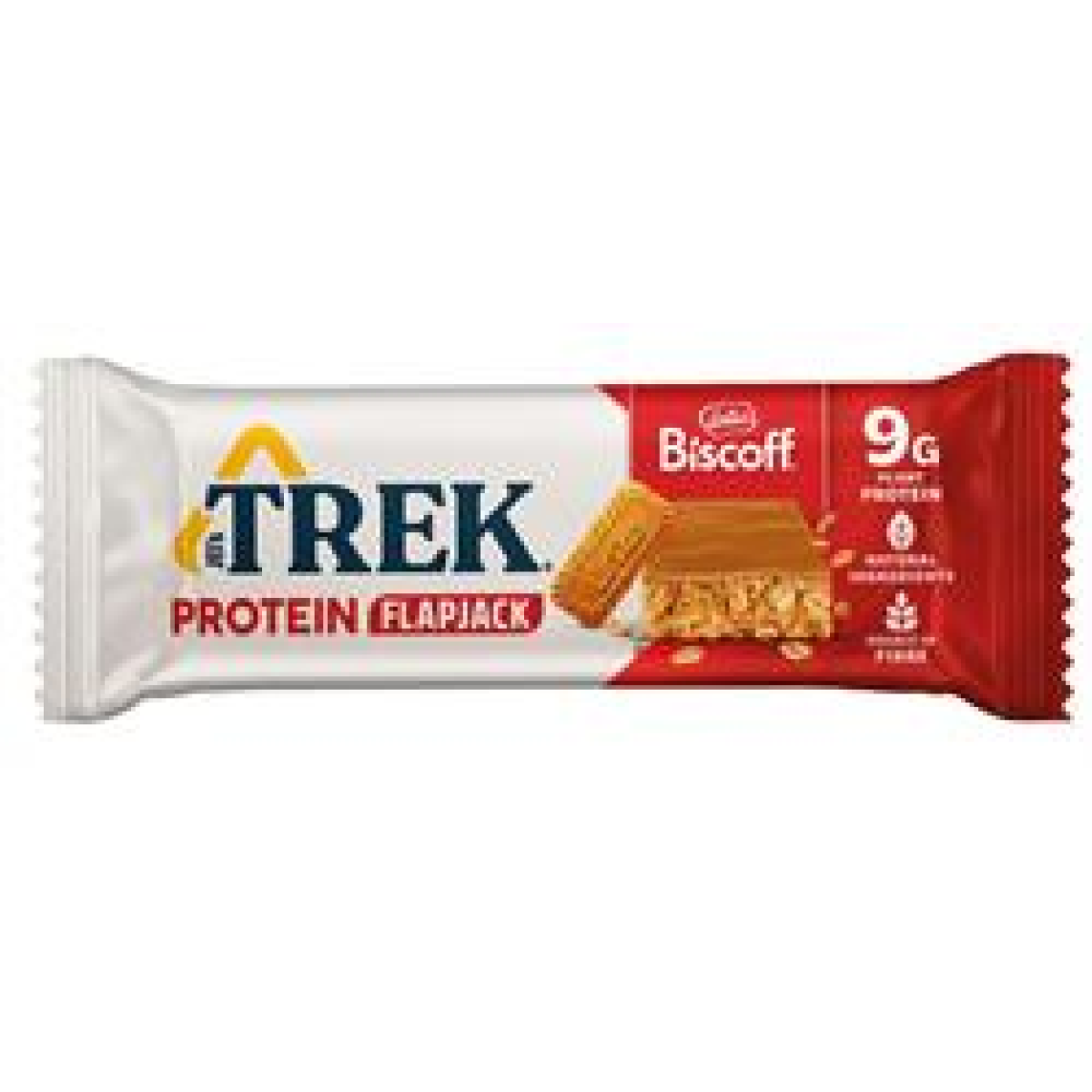 TREK Protein Flapjacks meet the iconic Biscoff - the ONLY official flapjack with Biscoff! TREK Biscoff Protein Flapjacks are filled with hearty oats and soya protein crispies, smothered with a rich generous layer of iconic Biscoff topping, and packed with 9g plant-based protein for natural energy. Each plant-based TREK Flapjack is 100% plant-based, vegan and a source of fibre.