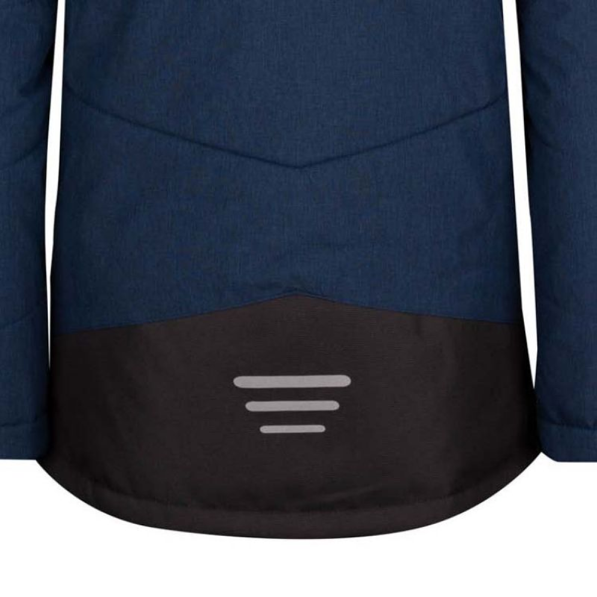 This lightweight winter jacket features windproof and water-resistant material for effective protection from the elements. A full-length zipper and hood keep out the cold, while reflective details enhance visibility.
