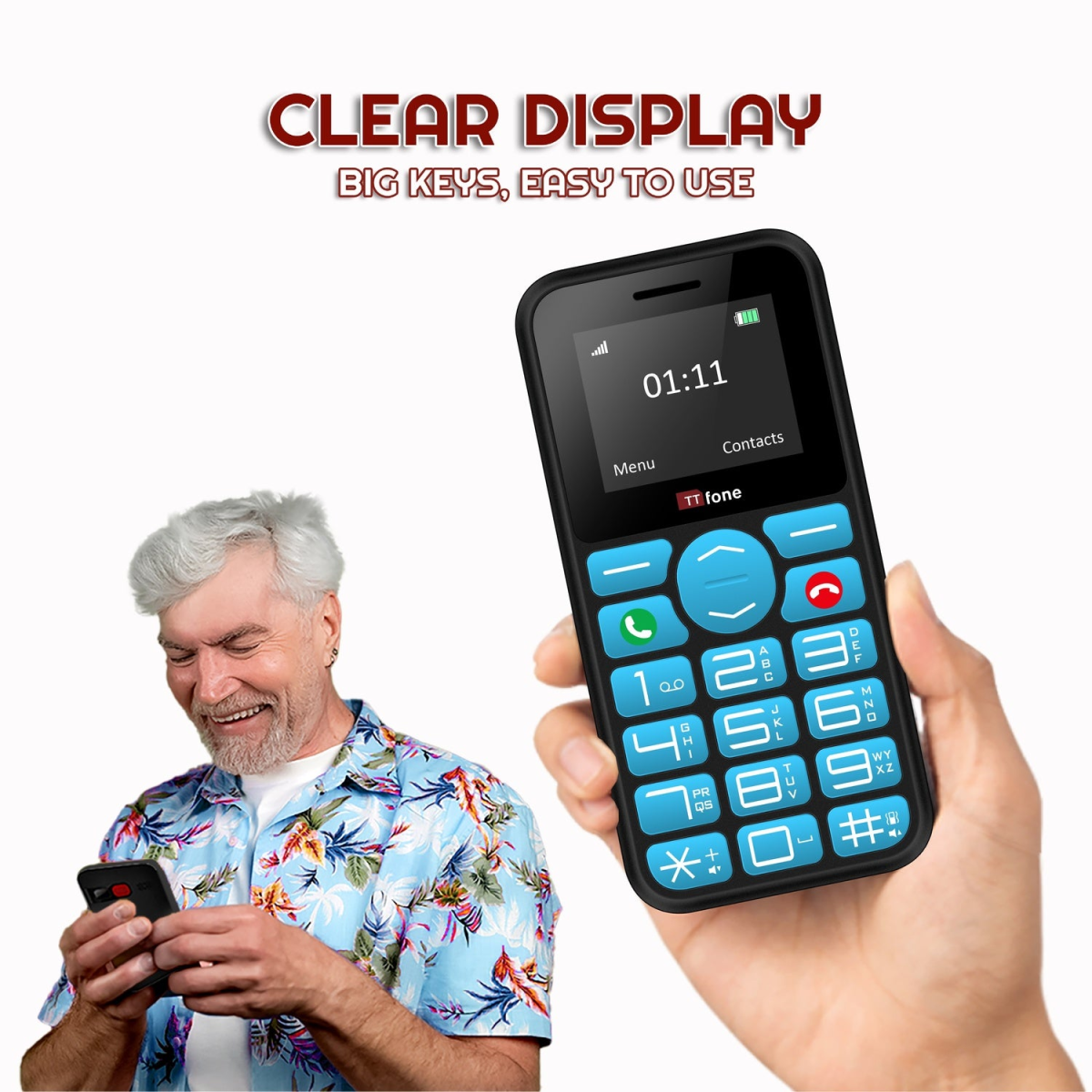 Looking for an easy to use, basic and simple mobile phone for an elderly relative or do you need one for yourself? Here at TTfone we design mobile phones that go back to basics, these have easy and simple menus, extra loud speakers with clear quality sound. Large separated physical buttons instead of hard to use touch screens. Bright clear displays with high visual contrast and large fonts. The TTfone TT190 is not only one of our newest phone but is also our cheapest emergency assistance mobile phone. It is simple to use and is a very handy pocket size. TT190 is the perfect phone for those who need a basic mobile phone with Bluetooth, Emergency Assistance button, large buttons and loud volume. Simple Keypad - The TT190 has a large separated keypad for easier typing. With talking keys and distinct red and green keys for making and ending calls. The TT190 has a speed dial facility. The speed dial key lets you contact someone on a press of a key. This completely eliminates the need of remembering numbers of relatives and friends The TTfone TT190 has also our key feature: the designated Emergency Assistance Button, making independent seniors confident and comfortable to do their everyday activities without making their loved ones worry about their well-being. The single click SOS option makes it easier for contacting in case of emergency, thus making the emergency calling in the best manner for their family or friends. Any number can be programmed in and it just takes one press of the panic button to make that all-important call.