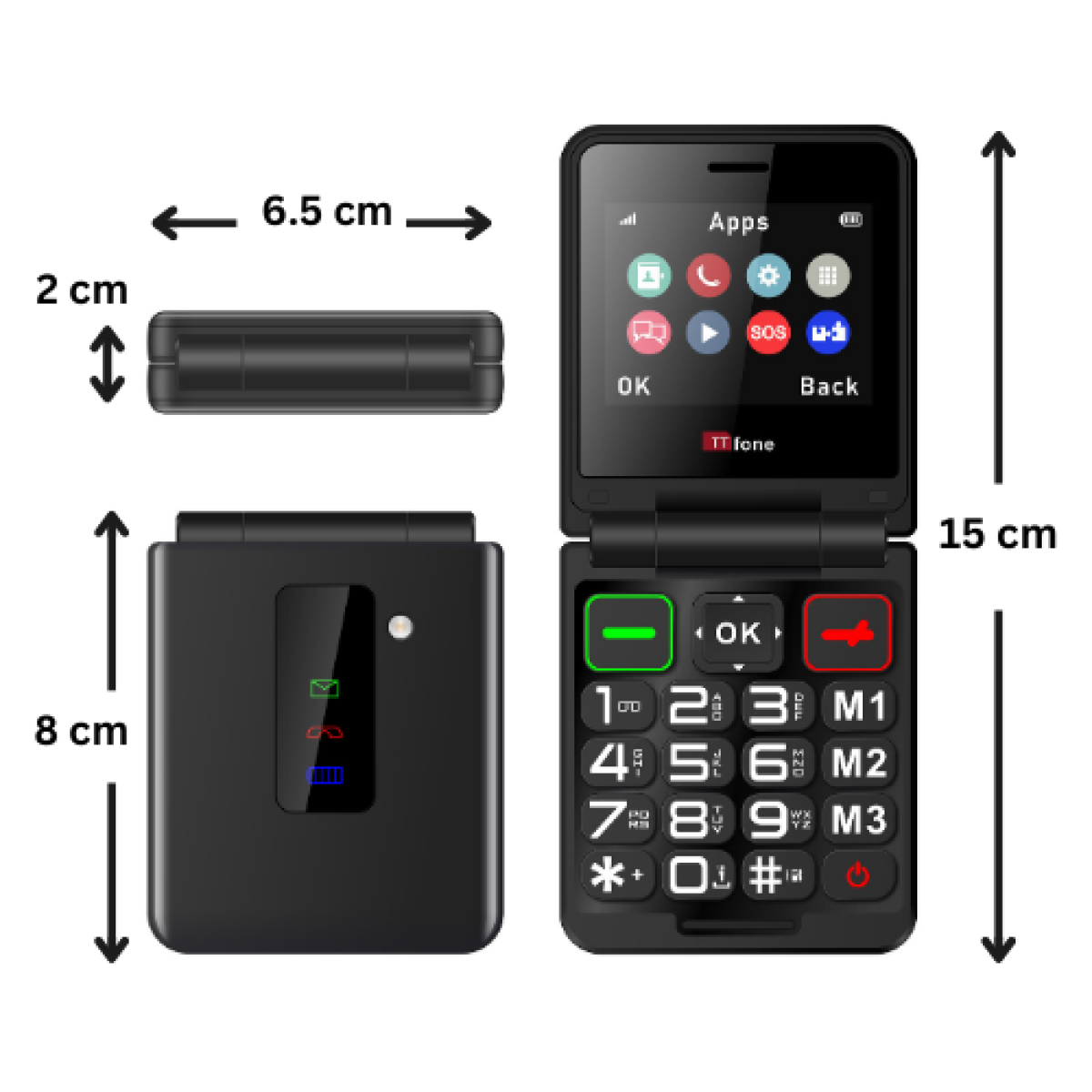 Effortless Communication: The TTfone TT660 features a flip design for easy call management simply open to answer and close to end, ensuring convenience and simplicity in communication.