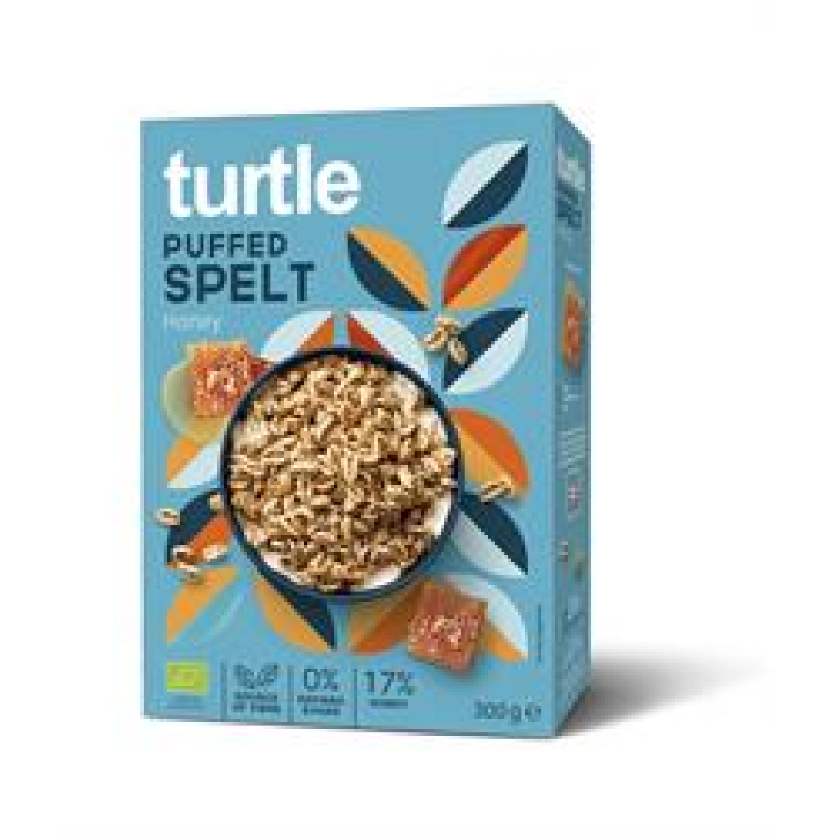 Enjoy a bowl of wholesome Turtle Puffed Spelt Honey - a delicious organic breakfast made from puffed spelt coated with nothing but honey. With just two ingredients, it's a wholegrain, fiber-rich cereal that's naturally sweetened, making it a wholesome choice.