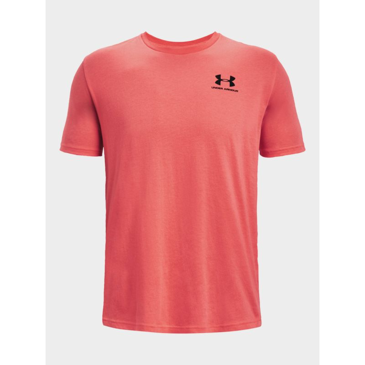 Under Armour Men's T-Shirt 1326799-690 in salmon. This men's short-sleeved T-shirt from Under Armour is an excellent choice for all kinds of physical activity. Made of a soft-touch cotton fabric with added polyester, it ensures airflow and durability. This Under Armour men's T-shirt is made of quick-drying Charged Cotton material, ensuring high comfort during training. The Loose Fit cut allows for freedom of movement, and the crew neckline makes it easy to put on. The UA logo is located on the left chest.