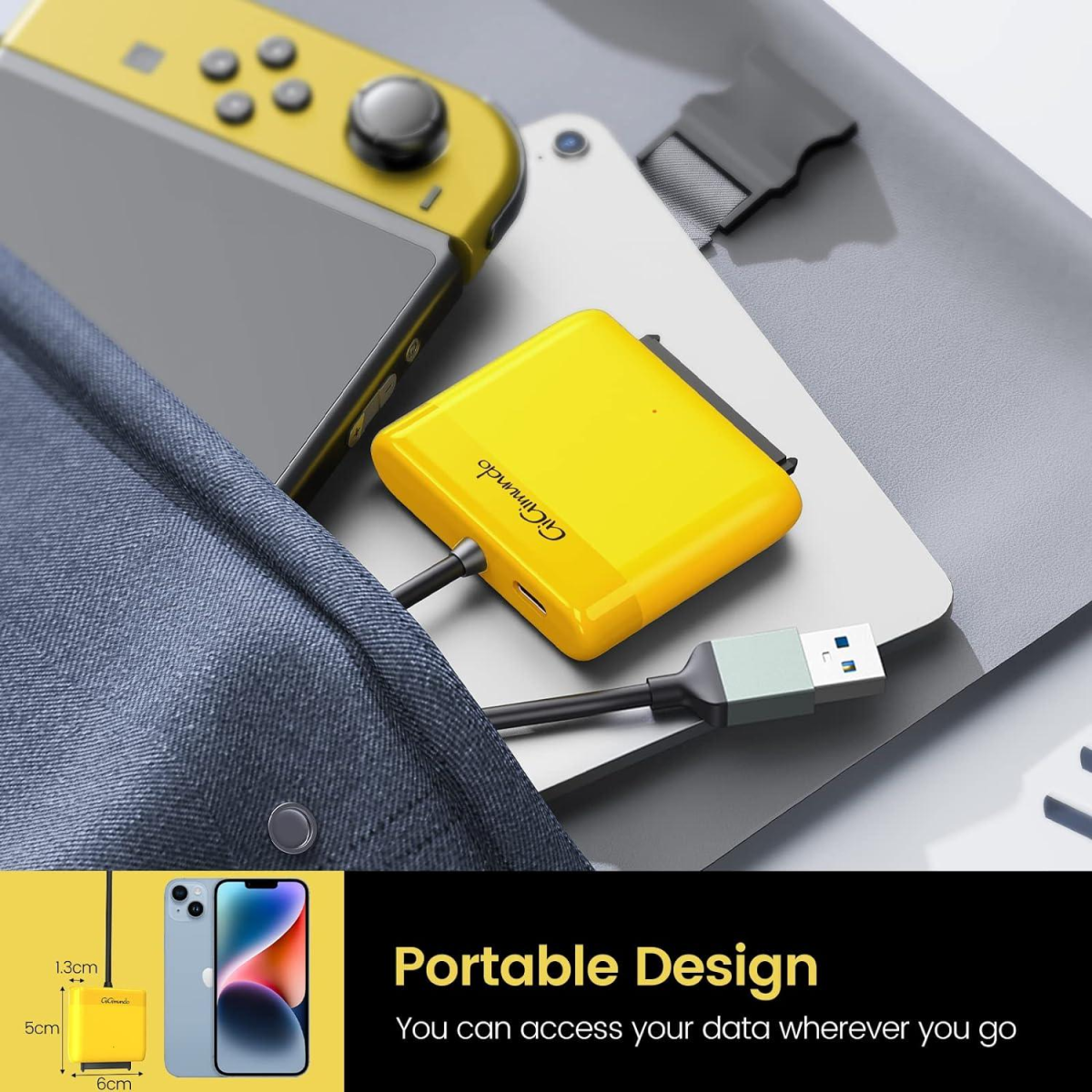 GiGimundo SATA to USB Adapter Cable - 0.5m USB 2.0 Cord for 2.5 Inch SSD & HDD with Silicone Case - Supports UASP - GM1-2AB