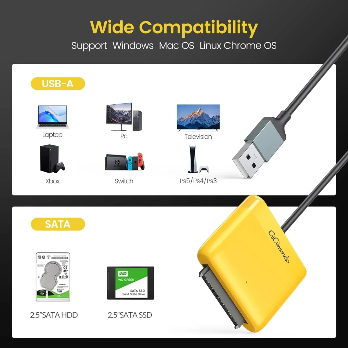 GiGimundo SATA to USB 3.0/2.0 Adapter Specifications