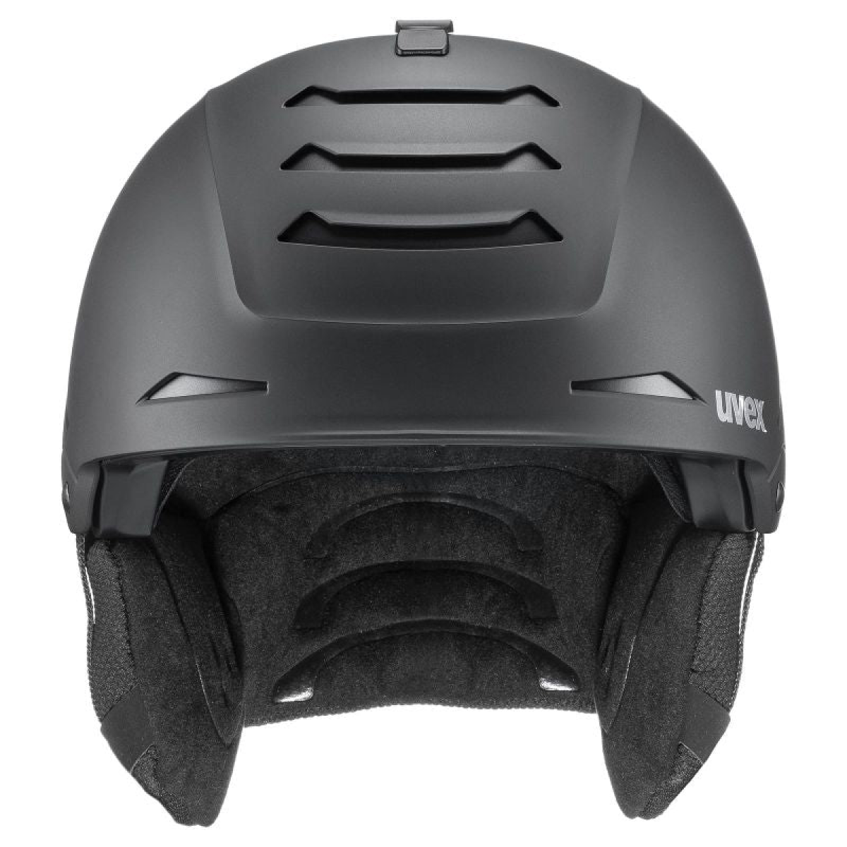 A modern helmet with goggle compatibility. A shell with deep internal channels and adjustable ventilation.