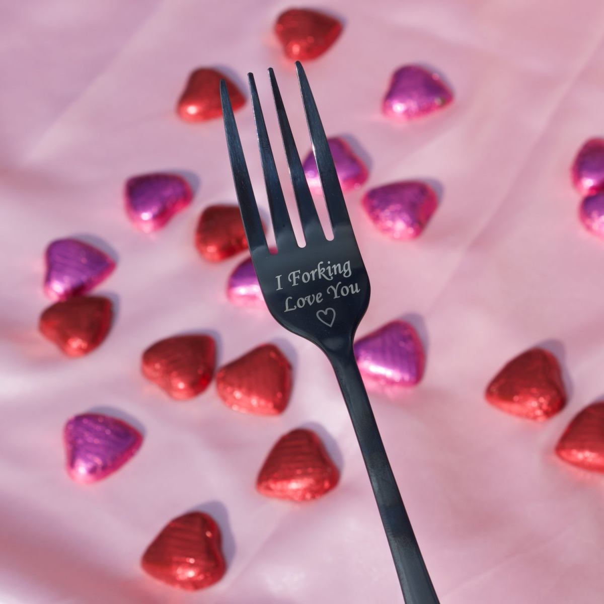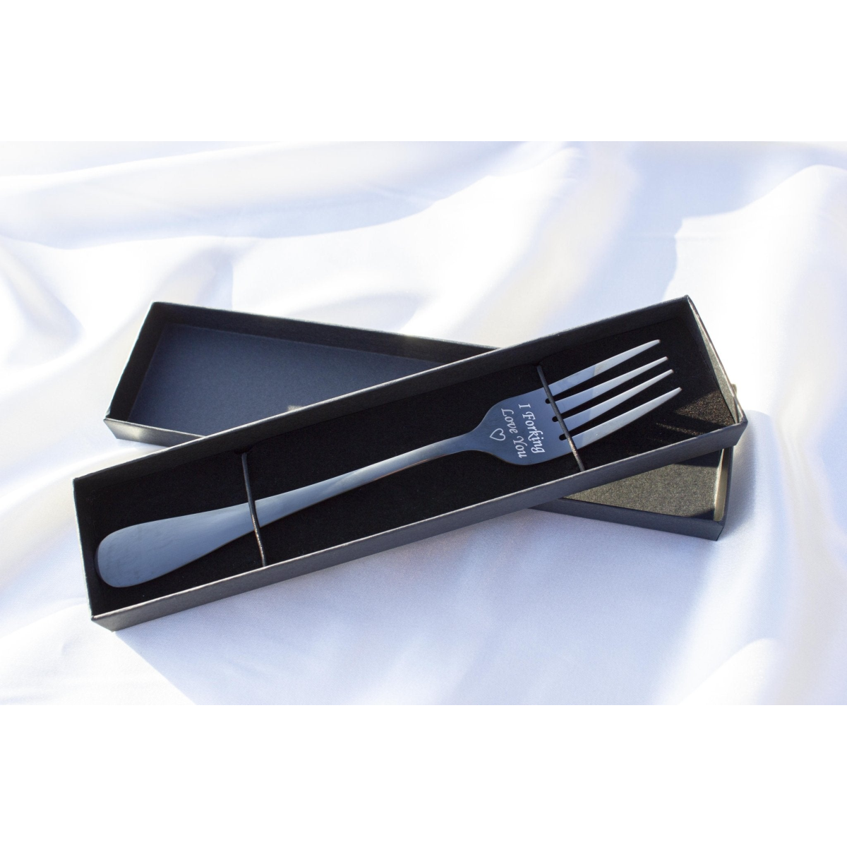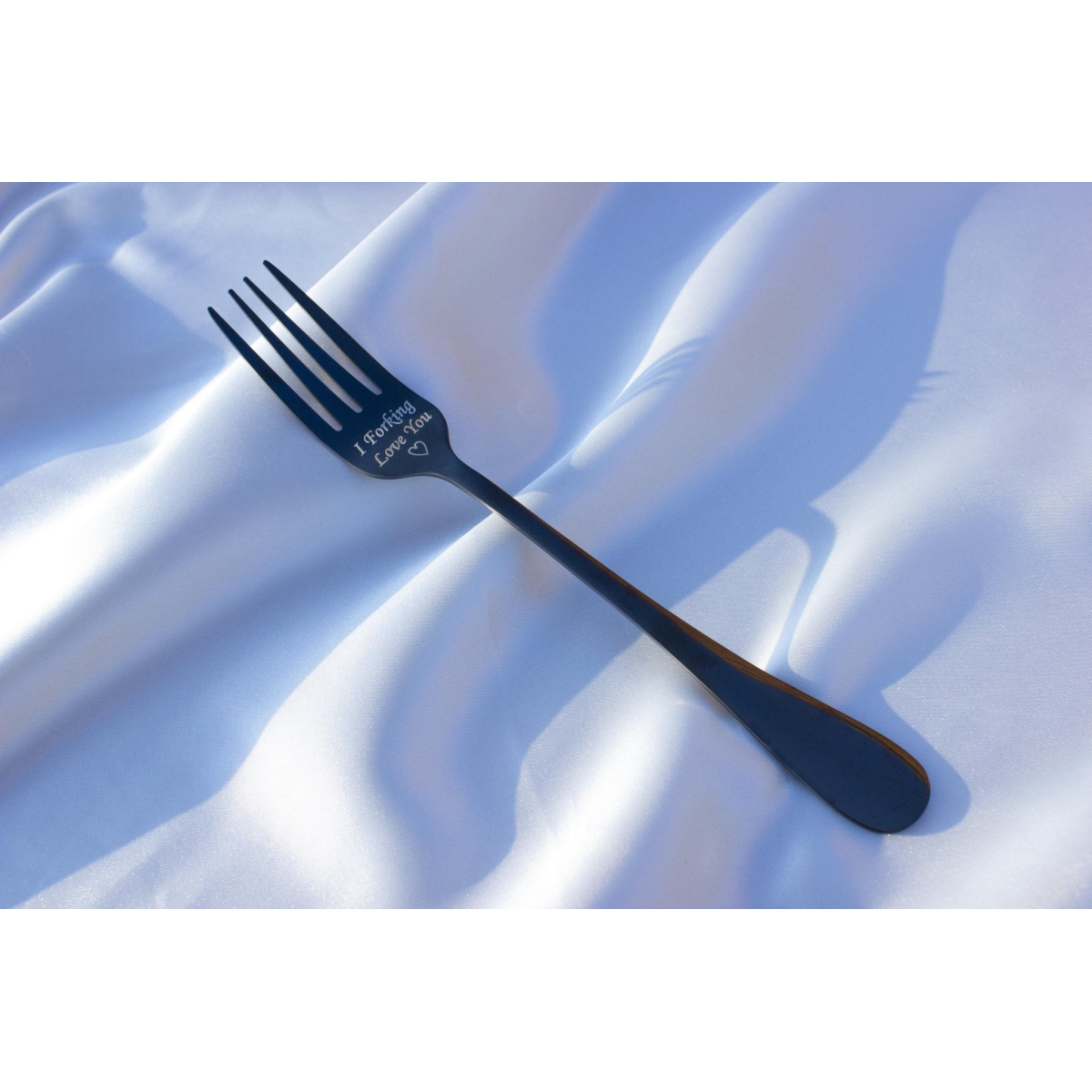 This product is not pre-engraved, we engrave each item to order. Please enter the engraving you would like in the personalisation box above. E.g. if you would like the engraving in the photo please enter "I Forking Love You (Heart)". Monotype Corsiva font, main part.