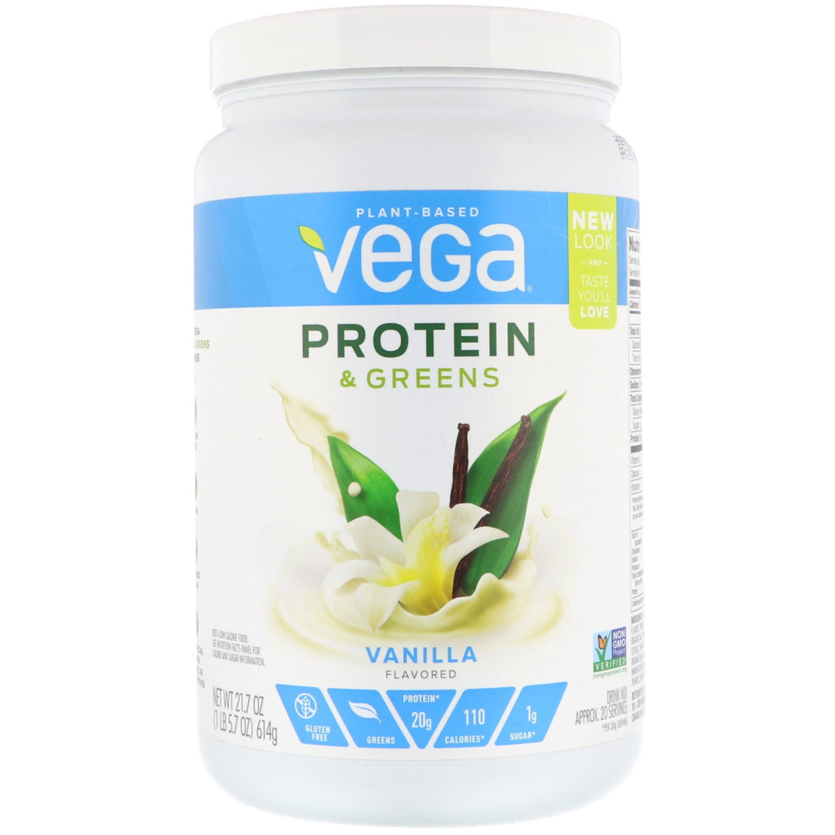 Plant-Based Gluten Free Greens Protein 20 g* 110 Calories* 1 g Sugar* Taste You'll Love Non-GMO Project Verified Drink Mix Approx. 20 Servings Made with Real Plant-Based Food Ingredients Looking for more than just protein? Shake up your smoothie routine with a tasty twist of greens. Deliciously smooth, Vega Protein & Greens helps power your day with real food nutrition. Protein: 20 g of protein from a multisource plant-based blend. Greens: Made with spinach & kale. The Vega Protein & Greens Promise Gluten Free Certified Vegan No Added Sugar No Artificial Colors, Flavors, or Preservatives *Per 30 g Serving.