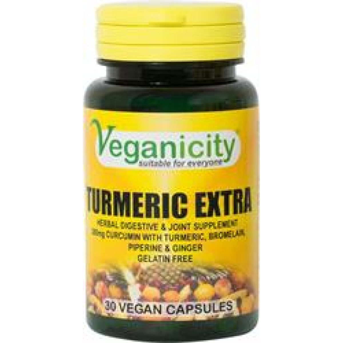 Veganicity Turmeric Extra 30 Vcaps high Curcumin Bromelain Black Pepper.