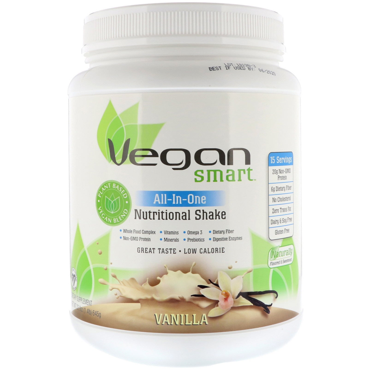 Plant Based Vegan Blend Whole Food Complex Non-GMO Protein Vitamins Minerals Omega 3 Probiotics Dietary Fiber Digestive Enzymes Great Taste Low Calorie Dietary Supplement 15 Servings 20 g Non-GMO Protein 6 g Dietary Fiber No Cholesterol Zero Trans Fat Dairy & Soy Free Gluten Free Naturally Flavored & Sweetened Quality Assured Purity Certified Vegan Naturade Quality & Purity Assured Since 1926 All-In-One Nutritional Shake for Optimal Health Everything you need in just one serving: Complete Protein Blend - Contains 5 different non-GMO plant based proteins providing all the essential amino acids in precise proportions, readily usable by the body, for building and repairing tissue and muscle. Whole Food Complex - Includes 9 different healthy colorful fruits and vegetables offering naturally occurring polyphenols, antioxidants and flavonoids to support overall wellness. 22 Vitamins & Minerals - Act as catalysts in thousands of biochemical reactions every day to support normal and healthy cell function. Fiber & Omega Blend - Provides 6 grams of dietary fiber to help keep you regular. Also contains over 200 mg of Omega-3 to support a healthy brain, heart and circulatory system. Probiotics- Contains 150mg ActivAloe bioactive polysaccharides that stimulate the growth and maintenance of beneficial intestinal flora. Digestive Enzymes Blend - Assists in digesting foods more completely for greater absorption of nutrients and the good health that goes with them.