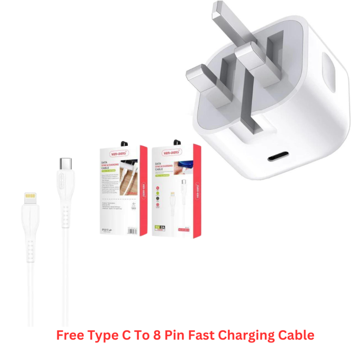 Ven-Dens 20w Fast Charger With Fast Charging Type C to 8 Pin Cable Free
