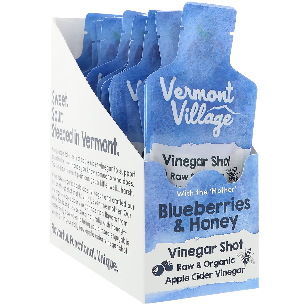 Vermont Village Vinegar Shots, , Apple Cider Vinegar Shot, Blueberries & Honey, 12 Pouches, 1 oz (28 g) Each