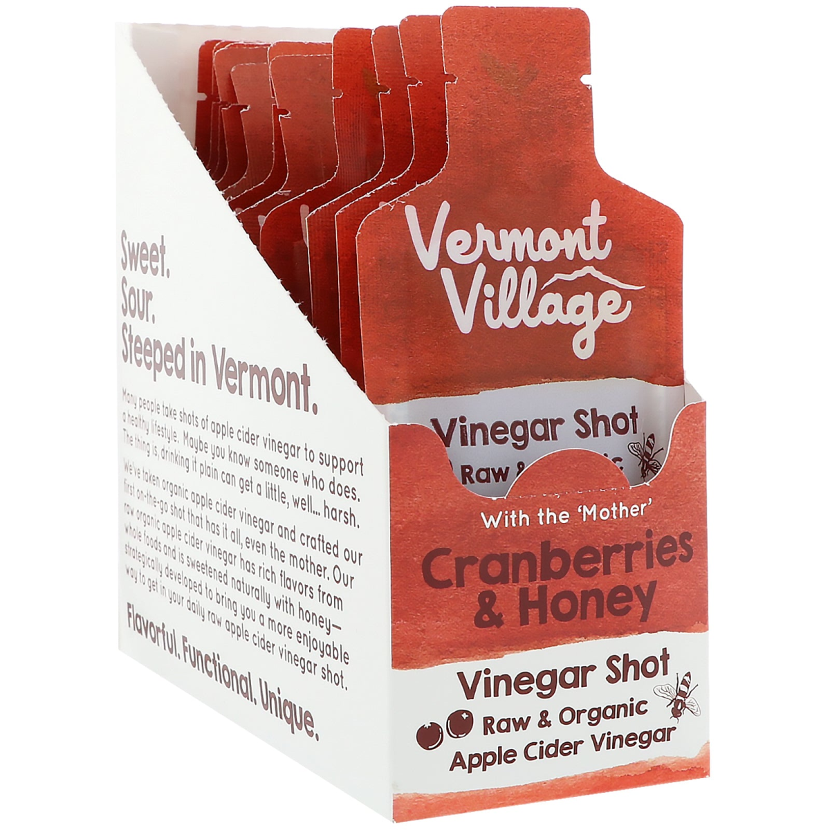 Vermont Village Vinegar Shots, , Apple Cider Vinegar Shot, Cranberries & Honey, 12 Pouches, (1.0 oz) Each