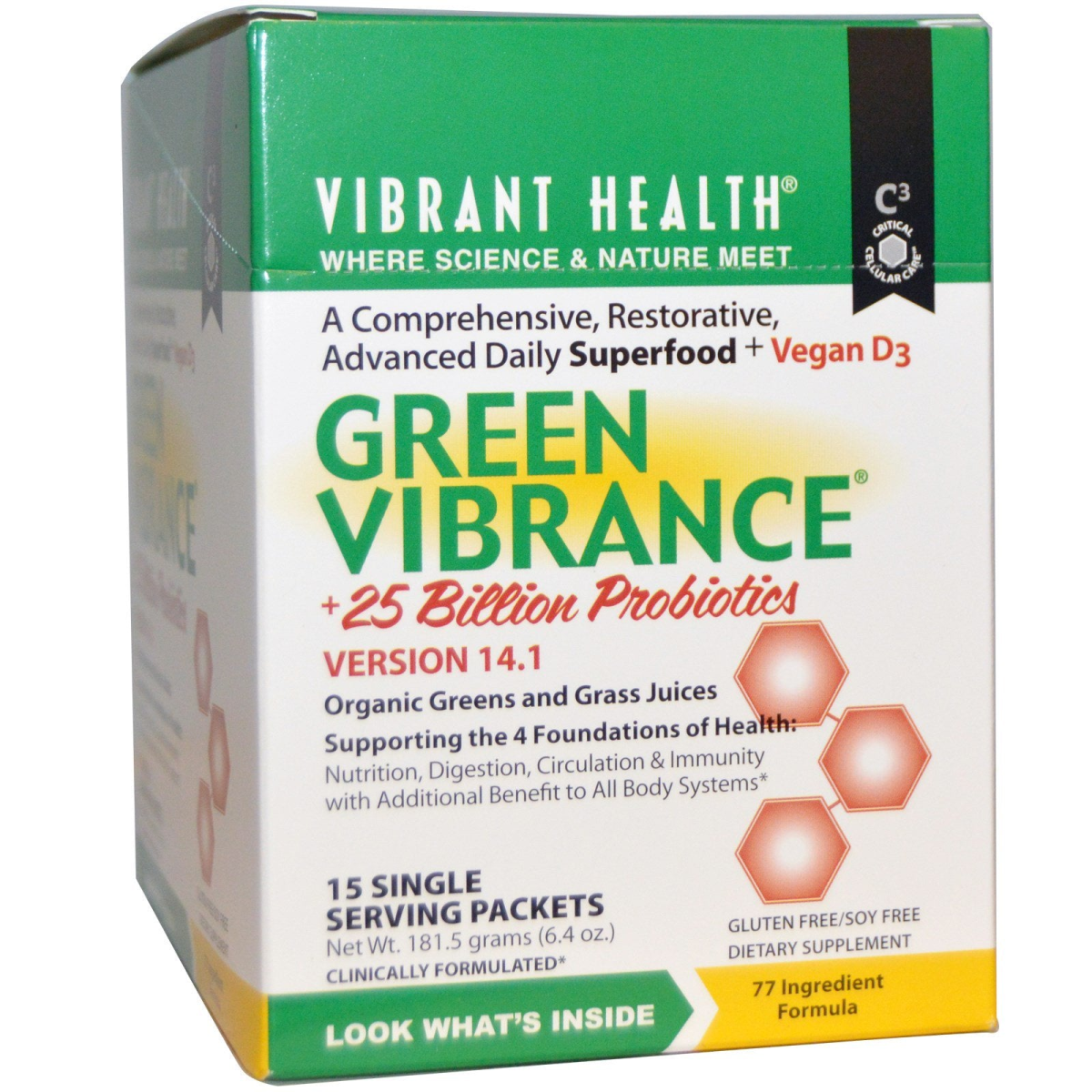 Vibrant Health, Green Vibrance +25 Billion Probiotics, Version 14.1, 15 Packets, 6.4 oz (181.5 g)