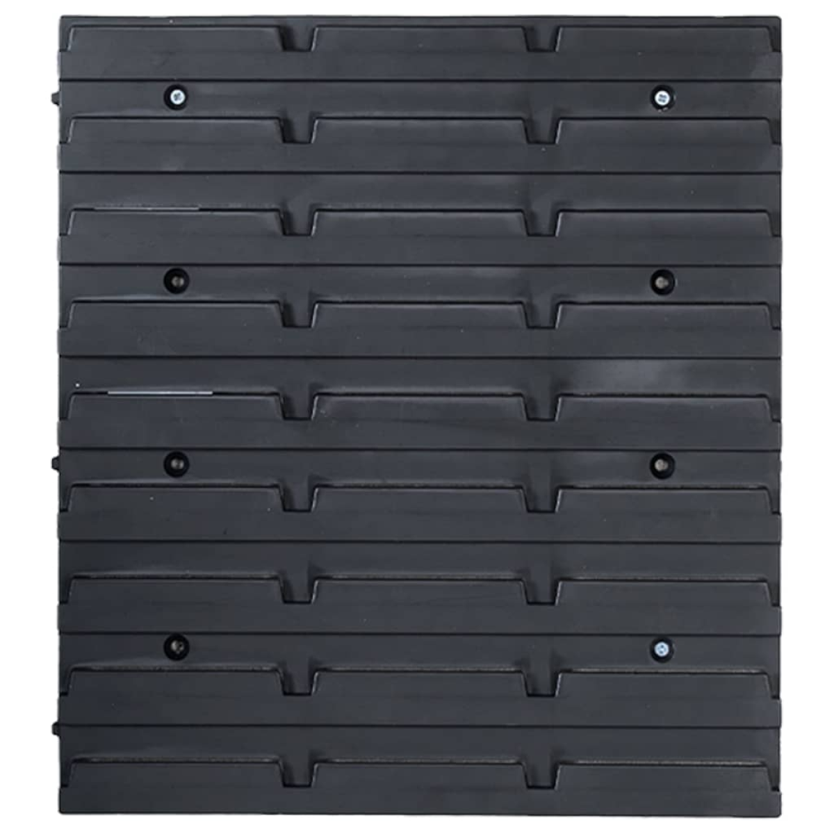 Keep your garage, craftroom and workshop organized with this storage bin kit with wall panels. The functional rack with stackable boxes offers many storage possibilities for small items such as screws, nails, nuts, sockets, fittings etc. The 8 solid wall panels hold 120 boxes, which can be labeled, for better overview of all small parts. You can take out the storage bins individually and stack them on top of each other. The rack set is expandable and easily mountable onto a garage or shack wall. This storage bin kit can be arranged to suit all your needs.