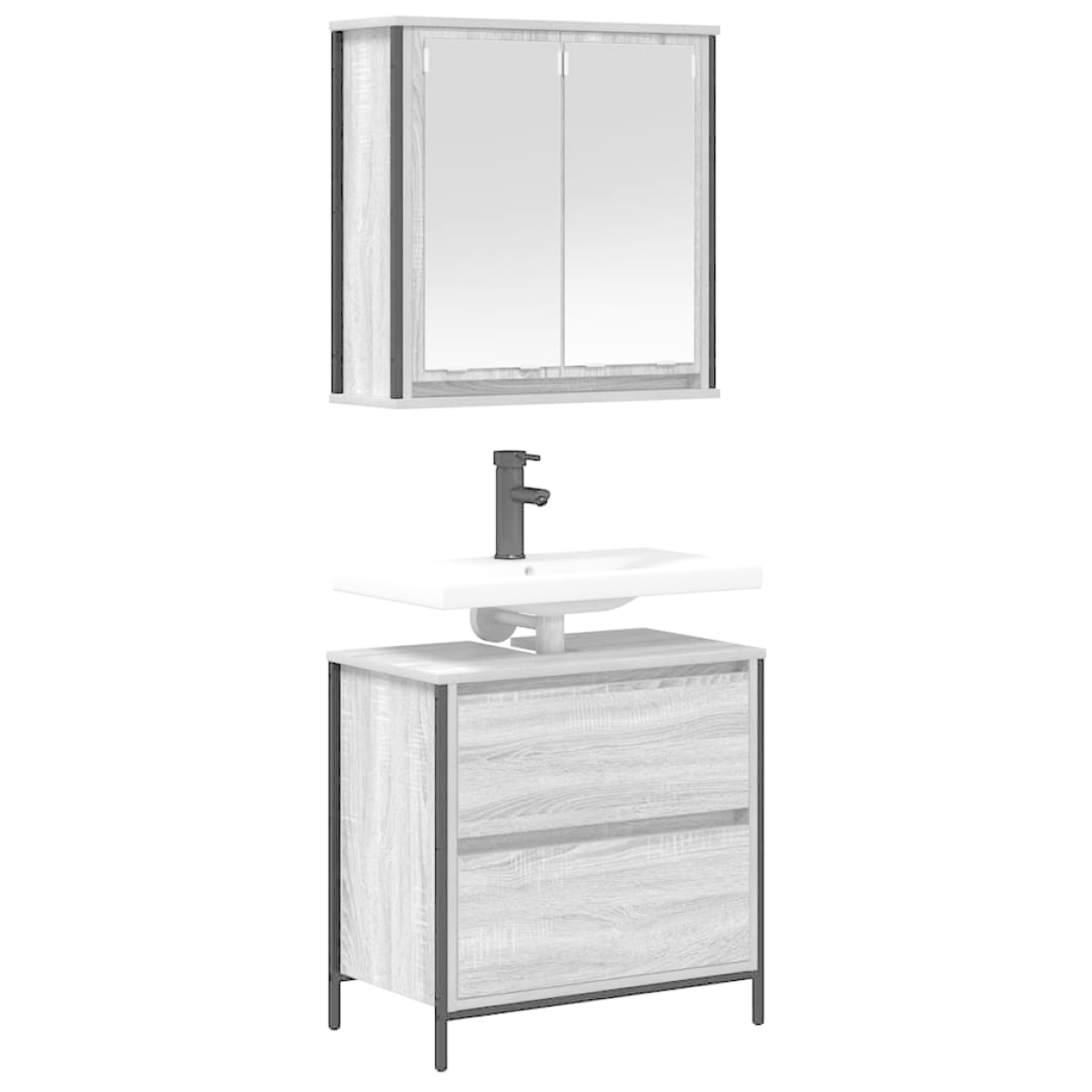 This stylish bathroom furniture set is an excellent addition to your bathroom, giving it a tidy and striking appearance! Stable and durable material: Engineered wood is a durable and stable material with a smooth surface that is resistant to moisture, warping, and splitting, making it a reliable choice for a variety of projects.Ample storage space: This bathroom furniture offers ample storage space to keep your essentials well organised and within reach.Sturdy and strong tabletop: The robust tabletop offers a reliable surface for keeping your essentials within easy reach, making it perfect for everyday use. Whether you’re placing vanity items or decorative items, its durability ensures it can handle various tasks with ease.Integrated mirror: The built-in mirror enhances functionality, allowing you to easily get ready while saving you the hassle of finding a separate mirror.Easy to maintain: Thanks to its smooth surface, the bathroom cabinet is easy to clean with a damp cloth and requires less maintenance. Warning:To prevent it from tipping over, this product must be used with the provided wall attachment device. Good to know:Screws and plugs for inside the wall are not included. We advise to find and use screws and plugs suitable specifically for your walls. If you're not sure, you can consult with a professional. Please read and follow each step of the instructions.