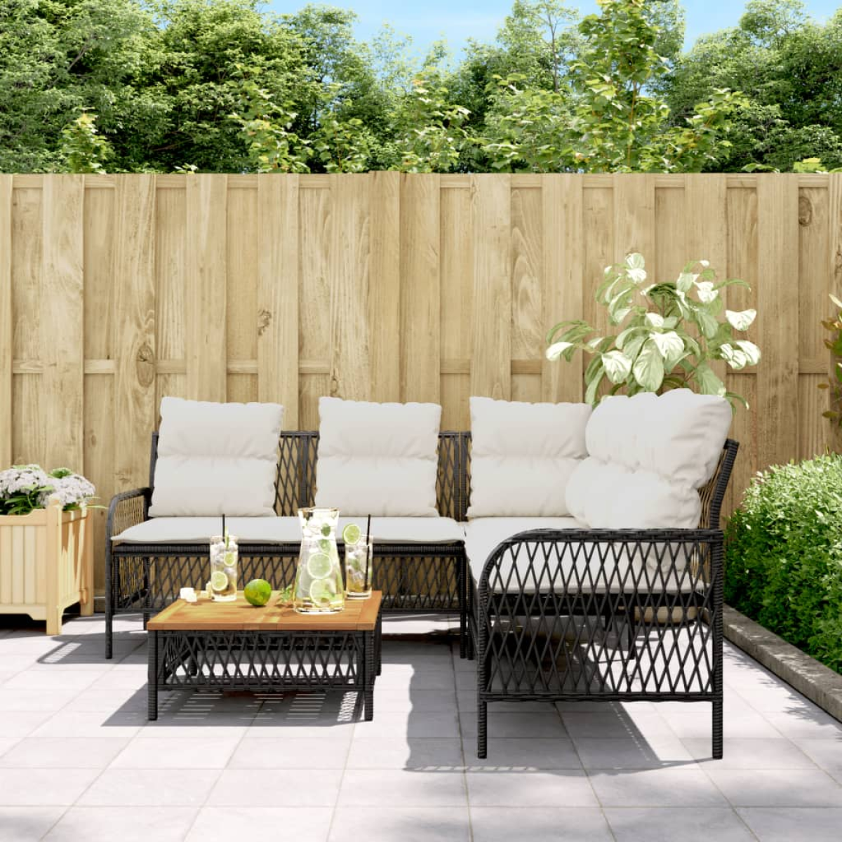 vidaXL 2 Piece Garden Sofa Set with Cushions Black Poly Rattan