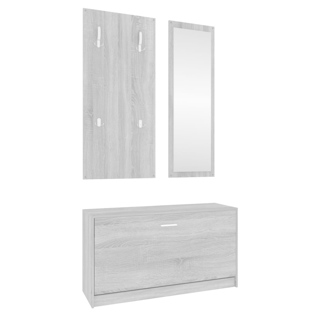 This 3-in-1 shoe cabinet set consists of a stylish shoe cabinet, a wall-mounted mirror and a coat rack, offering a myriad of storage solutions. Sturdy material: The engineered wood is of exceptional quality with smooth surface and also features strength, stability and resistance to moisture.Ample storage space: The shoe cabinet features a large compartment with a middle partition to keep things organised. You will no longer be annoyed by shoes cluttering your floor.Practical design: The coat rack is equipped with 4 sturdy coat hooks for your coats, bags, hats, scarves, and other to-go items. The mirror is big enough to keep you well preened. Note:Each product comes with an assembly manual in the box for easy assembly.