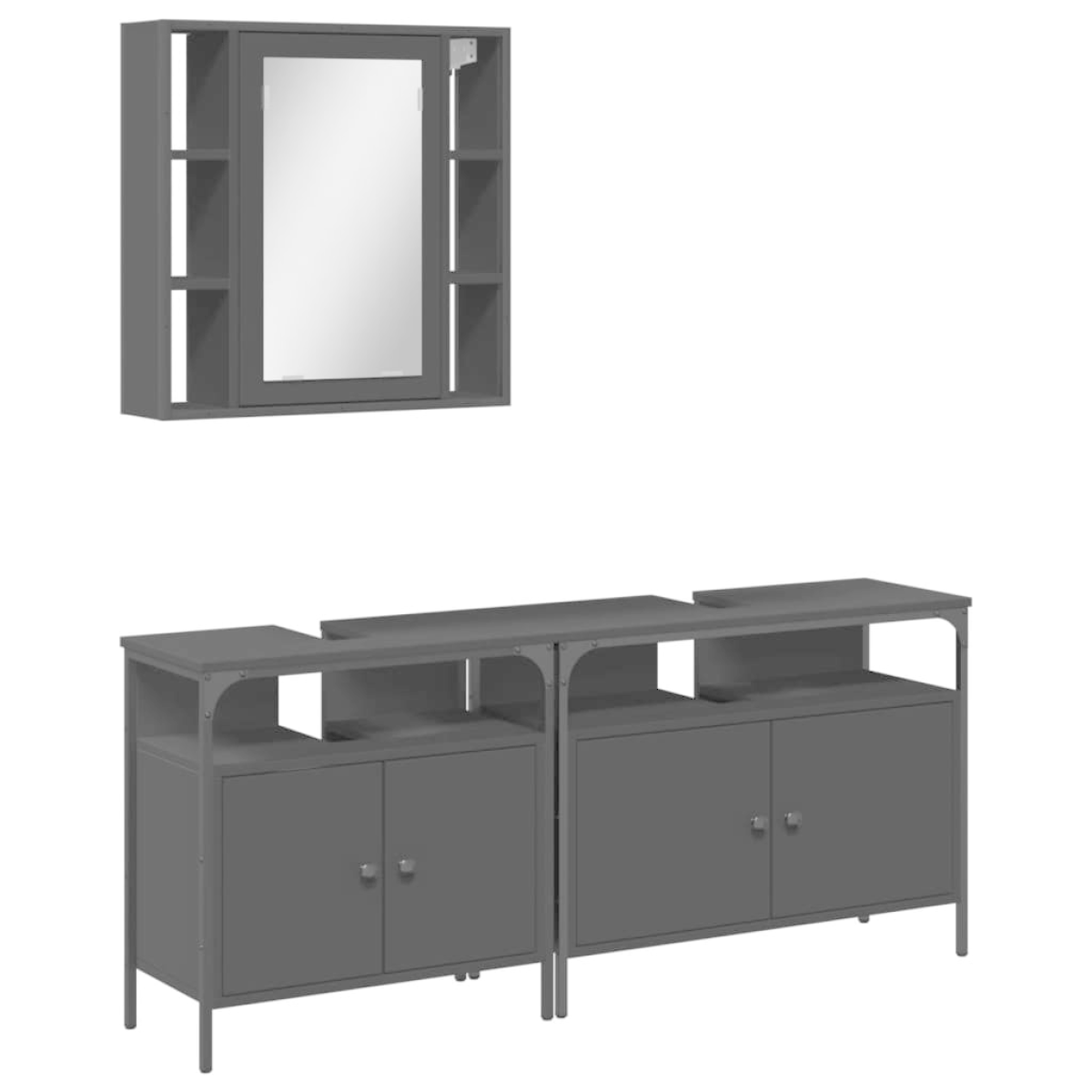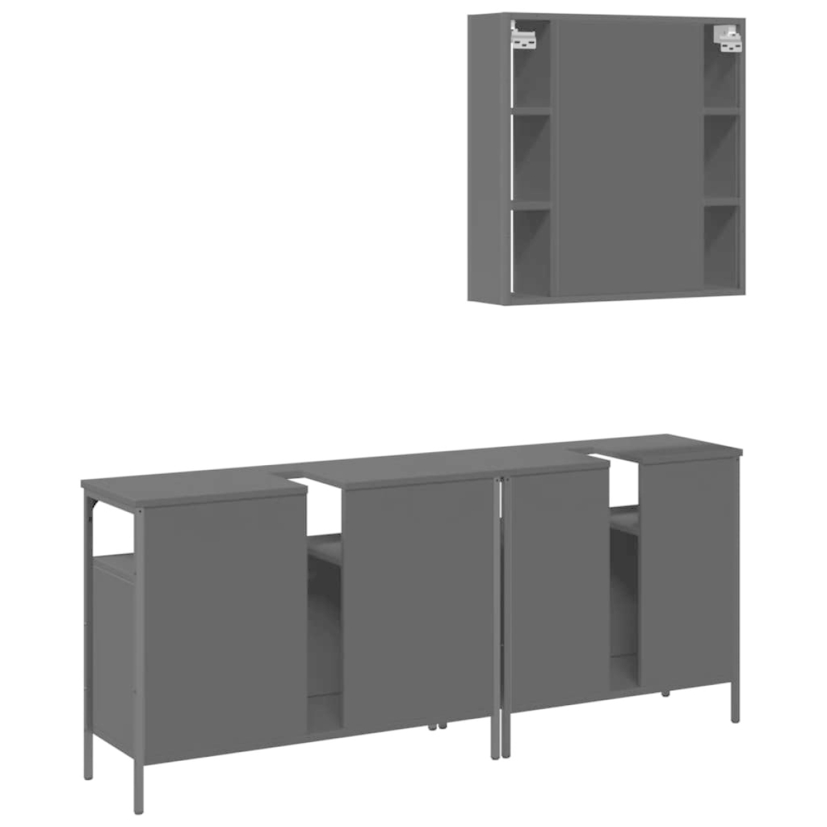 This attractive bathroom cabinet set, with ample storage space, features a stylish yet practical design. Sturdy construction: The powder-coated steel and engineered wood ensure sturdy construction and provide your items with strong support.Ample storage space: This bathroom furniture offers ample storage space to easily accommodate your essential toiletries and bath items such as soaps, shampoo, toothpaste, etc.Extra storage shelf: The bath mirror features a bottom shelf that offers extra storage space for placing your bathroom supplies like toothbrushes, facial cleansers, razors, etc.Clear image: The glass mirror face provides a fine and non-distorted reflection, so it is suitable for making up, shaving or checking the suit before going out.Adjustable feet: The adjustable feet with plastic pads keep the bathroom cabinet balanced on uneven ground and increase stability. Warning:To prevent it from tipping over, this product must be used with the provided wall attachment device. Good to know:Screws and plugs for inside the wall are not included. We advise to find and use screws and plugs suitable specifically for your walls. If you're not sure, you can consult with a professional. Please read and follow each step of the instructions.