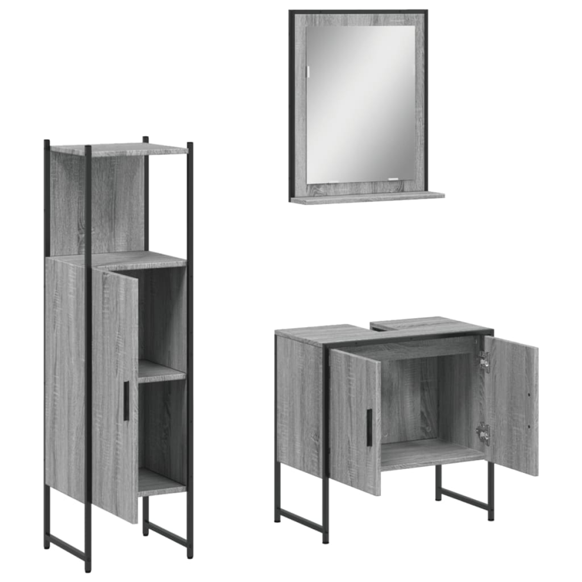This attractive bathroom cabinet set, with ample storage space, features a stylish yet practical design. Sturdy construction: The powder-coated steel and engineered wood ensure sturdy construction and provide your items with strong support.Ample storage space: This bathroom furniture offers ample storage space to easily accommodate your essential toiletries and bath items such as soaps, shampoo, toothpaste, etc.Extra storage shelf: The bath mirror features a bottom shelf that offers extra storage space for placing your bathroom supplies like toothbrushes, facial cleansers, razors, etc. Good to know:Screws and plugs for inside the wall are not included. We advise to find and use screws and plugs suitable specifically for your walls. If you're not sure, you can consult with a professional. Please read and follow each step of the instructions. Warning:To prevent it from tipping over, this product must be used with the provided wall attachment device.