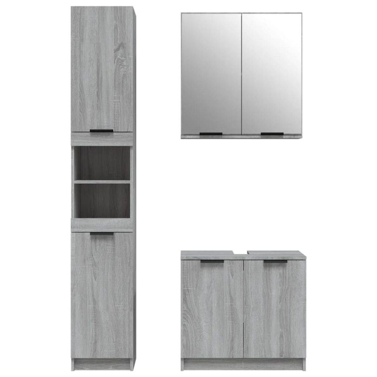 This attractive bathroom cabinet set, with ample storage space, features a stylish yet practical design. Easy-to-clean material: The engineered wood is of exceptional quality with a smooth surface and features strength, stability and resistance to moisture. Ample storage space: The storage space makes this bathroom furniture set easy to keep things organised. Stylish design: The clean lines and sleek design blend into your bathroom perfectly. Note:Screw(s) and plug(s) for inside the wall are not included. Seek and use screw(s) and plug(s) suitable for your walls. If you are uncertain, seek professional advice. Read and follow each step of the instruction carefully. Each product comes with an assembly manual in the box for easy assembly. Warning:In order to prevent overturning, this product must be used with the wall attachment device provided.
