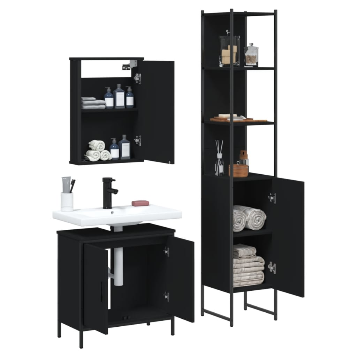 This handy bathroom furniture set, featuring spacious storage space, is an excellent addition to your bathroom, giving it a tidy and striking appearance! Durable material: The engineered wood is of exceptional quality with smooth surface and also features strength, stability and resistance to moisture. Ample storage space: The bathroom furniture provides various storage options and spacious space for you to store items in your bathroom. Space-saving design: The bathroom mirror cabinet can be wall-mounted easily to save floor space. The top of the bathroom cabinet is ideal for placing the sink so that you can fully utilise the vacant space under the sink. Clear image: The glass mirror face provides a fine and non-distorted reflection, so it is suitable for making up, shaving or checking the suit before going out. Warning:To prevent it from tipping over, this product must be used with the provided wall attachment device. Good to know:Screws and plugs for inside the wall are not included. We advise to find and use screws and plugs suitable specifically for your walls. If you're not sure, you can consult with a professional. Please read and follow each step of the instructions.